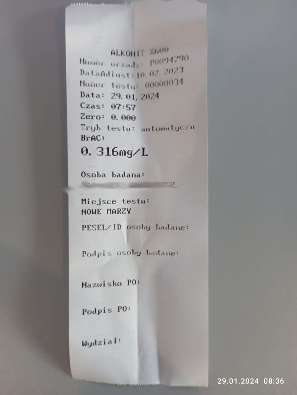 Podobna sytuacja miała miejsce w piątek 26 stycznia na bramkach w Nowej Wsi k. Torunia. Tam również grudziądzcy inspektorzy skontrolowali kierowcę, obywatela Ukrainy, który nie przeszedł pozytywnie testu na trzeźwość bowiem „wydmuchał” prawie pół promila alkoholu.