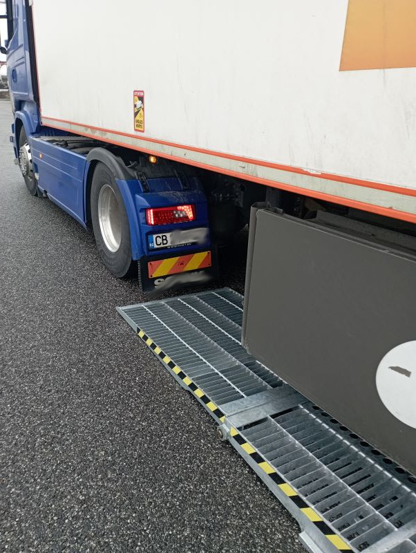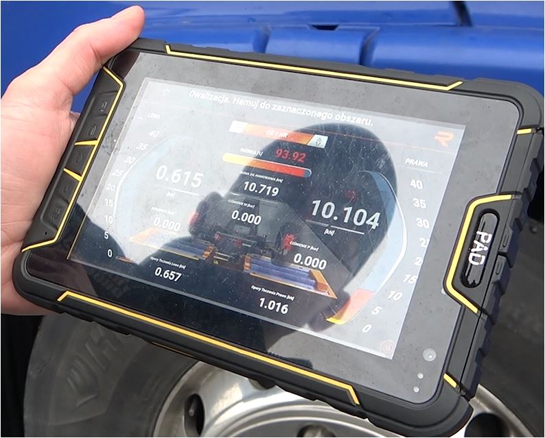 Naczepa wchodząca w skład kontrolowanego pojazdu członowego miała pęknięty zderzak, co mogło skutkować jego odpadnięciem i w sposób bezpośredni zagrażało bezpieczeństwu uczestników ruchu drogowego. W związku z podejrzeniem niesprawności układu hamulcowego pojazd został poddany szczegółowej kontroli technicznej przy użyciu Mobilnej Jednostki Diagnostycznej (MJD), będącej na wyposażeniu bydgoskich inspektorów. Sprawdzenie przeprowadzone z wykorzystaniem rolkowego urządzenia służącego do badania m.in. wartości i równomierności sił hamowania wykazało, że jedno z kół pierwszej osi naczepy nie hamuje. Podkreślić należy, iż niesprawny układ hamulcowy pojazdu uczestniczącego w ruchu drogowym stanowi ogromne niebezpieczeństwo dla wszystkich użytkowników drogi, szczególnie w przypadku pojazdu, którego masa wraz z ładunkiem wynosi prawie 40 ton.