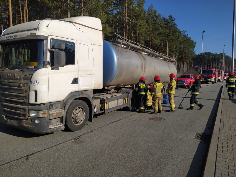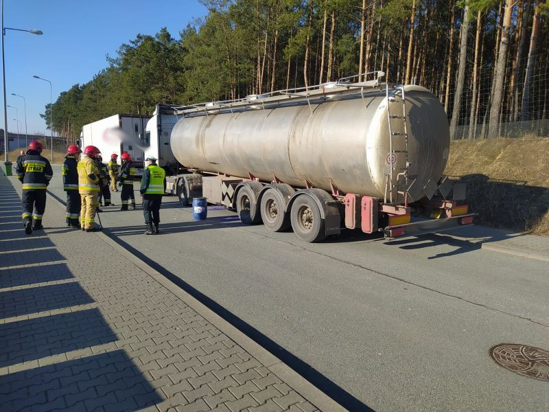 Kontrola stanu technicznego z finałem na parkingu depozytowym i interwencją 4 zastępów Państwowej Straży Pożarnej - tak zakończyła się kontrola rosyjskiego pojazdu przewożącego olej hydrauliczny.