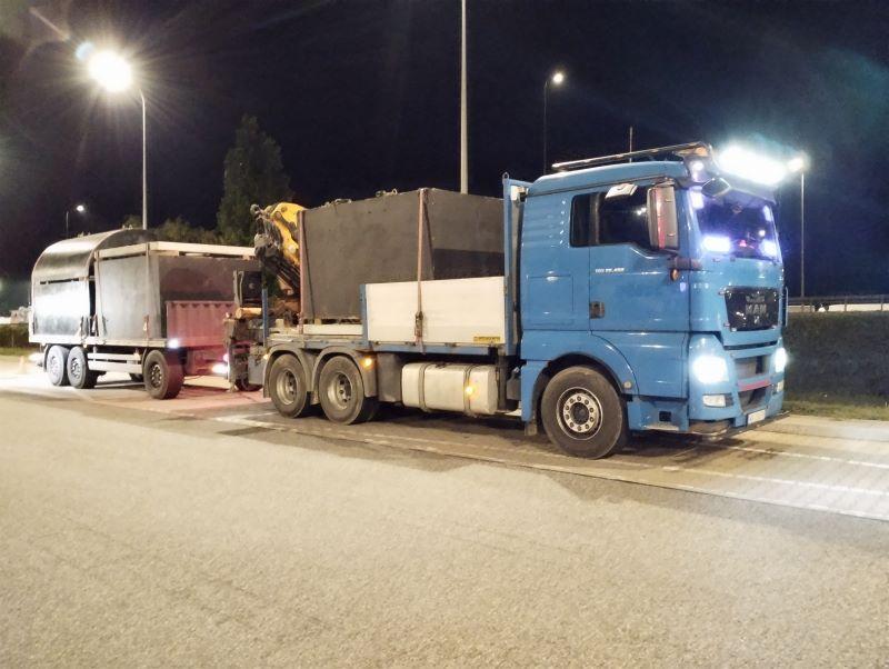 W trackie tych działań skontrolowane zostały dwa zespoły pojazdów, którymi wykonywano przewóz zbiorników betonowych z okolic Radomia. W obu przypadkach ważenie pojazdów wykazało znaczne przekroczenie ich dopuszczalnych mas całkowitych, a w jednym dodatkowo przekroczone były dopuszczalne naciski osi.