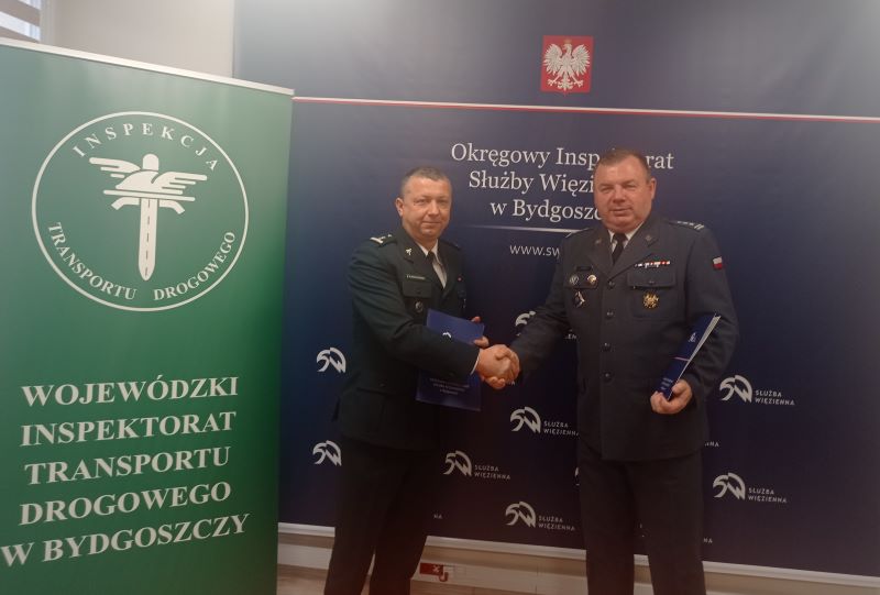 Pan Inspektor Marcin Mroczkowski, Kujawsko-Pomorski Wojewódzki Inspektor Transportu Drogowego w Bydgoszczy oraz Płk Andrzej Gniot, Dyrektor Okręgowy Służby Więziennej w Bydgoszczy podpisali porozumienie o współpracy. Wspólne inicjatywy dotyczące organizacji kampanii edukacyjnych, społecznych i prewencyjnych mają wpłynąć na poprawę bezpieczeństwa w ruchu drogowym.