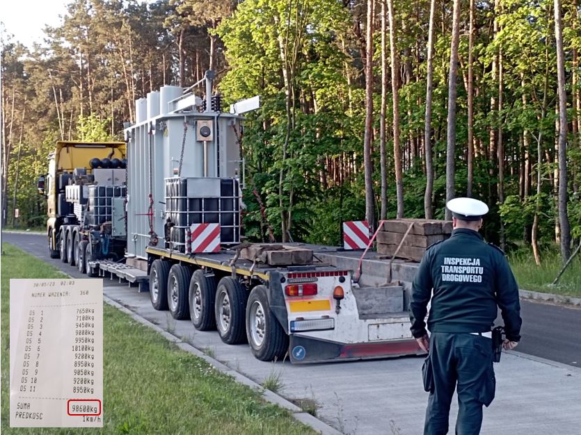 Zespół pojazdów przewożący transformator poruszał się ekspresową „piątką” koło Bydgoszczy w nocy z poniedziałku na wtorek. Choć masa samego transformatora zadeklarowana przez nadawcę w dokumencie przewozowym to 55 ton, a masa własna ciągnika z naczepą wynosiła ponad 40 ton, kierowca legitymował się zezwoleniem kategorii IV na przejazd pojazdu nienormatywnego o masie całkowitej do 60 ton. Tymczasem po zważeniu okazało się, że pojazdy z ładunkiem ważą 98,6 ton. Przekroczone zostały także naciski wszystkich siedmiu osi naczepy. Ponadto zestaw był za wysoki i za długi. Na takie parametry przewoźnik powinien uzyskać zezwolenie kategorii V, którego wydanie wiąże się z wyznaczeniem przez zarządców dróg bezpiecznej trasy przejazdu, uwzględniającej m.in. wytrzymałość obiektów inżynierskich (mostów, wiaduktów), określeniem warunków przejazdu itp. W tym przypadku takiej zgody nie było. Ponadto kierowca jednego z dwóch pojazdów pilotujących, które zabezpieczały przejazd gabarytu, nie posiadał stosownych uprawnień wymaganych do wykonywania tych czynności.