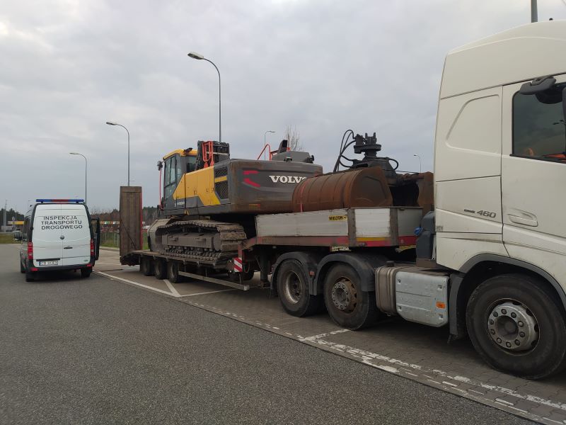 Również na autostradzie A1 chociaż w godzinach popołudniowych i w powiecie toruńskim inny patrol kujawsko-pomorskiej ITD zatrzymał przewóz drogowy maszyny budowlanej. Wyniki ważenia 6-osiowego pojazdu, wykazały przekroczenie potrójnej osi naczepy oraz masy dopuszczalnej zespołu pojazdów – pojazd z ładunkiem ważył blisko 49 ton.