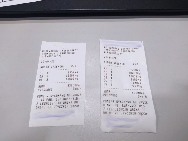 W obydwu przypadkach pojazdy miały przekroczone także dopuszczalne naciski osi. Tutaj przekroczenia wyniosły od 2 do prawie 5 ton.