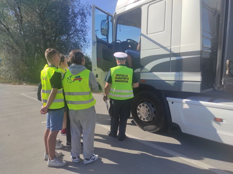 Poznanie specyfiki pracy inspektorów Inspekcji Transportu Drogowego – oto cele dzisiejszej lekcji przyszłych kierowców zawodowych na punkcie kontrolnym przy al. Jana Pawła II w Bydgoszczy.