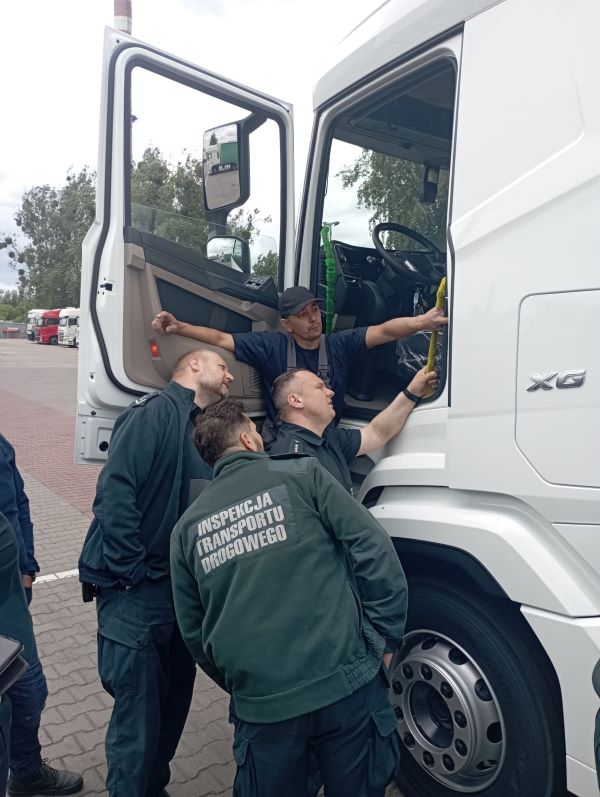 Duży nacisk położono na praktyczne aspekty związane z codzienną pracą inspektora – jak rozpoznać pojazd wyposażony w ADAS, na co zwracać uwagę podczas kontroli drogowej, jakie sygnały mogą świadczyć o wyłączeniu lub niesprawności systemu, a także jakie procedury należy podjąć w przypadku stwierdzenia nieprawidłowości. Dzięki współpracy z serwisem DAF, uczestnicy mieli dostęp do pojazdów testowych i mogli obserwować działanie systemów w realnych warunkach, w tym z użyciem sprzętu diagnostycznego.