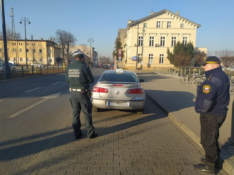 W dniu dzisiejszym (22.03) kujawsko-pomorscy inspektorzy transportu drogowego, wsparci funkcjonariuszami straży miejskiej z Bydgoszczy i Torunia, skontrolowali taksówki wykonujące przewozy drogowe za pomocą aplikacji mobilnych.