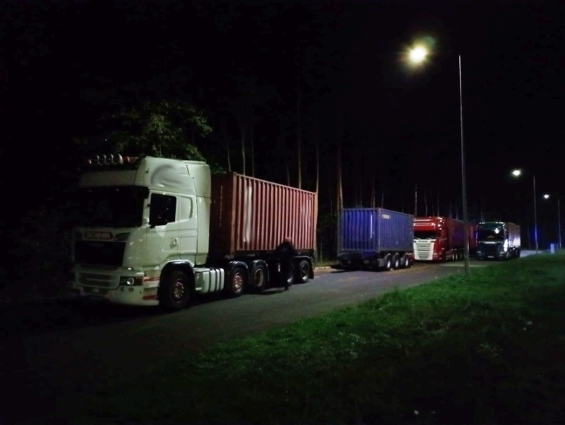 W nocy z niedzieli na poniedziałek (z 8 na 9 października) inspektorzy Inspekcji Transportu Drogowego w okolicach Bydgoszczy zatrzymali do kontroli trzy zespoły pojazdów przewożące po dwa 20-stopowe kontenery morskie z ładunkami drobnicowymi. Były to tzw. „stonogi”, czyli dwie połączone z sobą na sztywno naczepa i przyczepa podpięte do ciągnika siodłowego. Analiza dokumentów przewozowych dawała uzasadnione przypuszczenie, że pojazdy będą przeładowane. I tak właśnie było, ponieważ po zważeniu okazało się, że „stonogi”, zamiast dopuszczalnych 40 ton, ważą odpowiednio: 64,65 ton, 66,5 ton, a najcięższa z nich 71,4 ton. We wszystkich przypadkach, z uwagi na znaczne przeładowanie środków transportu, przekroczone zostały także ich dopuszczalne naciski osi. Przy masach całkowitych przekraczających 60 ton przepisy o ruchu pojazdów nienormatywnych wymagają pilotowania, czego tutaj również zabrakło. Z uwagi na nieprawidłową konfigurację zespołów pojazdów oraz przekroczone dopuszczalne wartości parametrów, kierowcy musieli odpiąć „nadmiarowe” przyczepy, co pozwoliło także przywrócić masy całkowite zestawów do wartości zgodnych z przepisami.