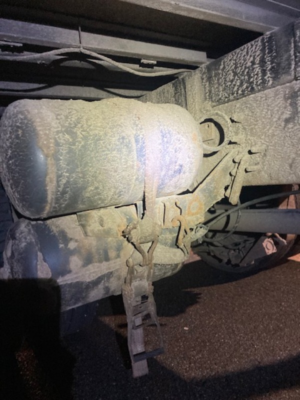 Również kontrola stanu technicznego wykazała rażące nieprawidłowości: pojazd miał uszkodzone klosze reflektorów, zbiorniki powietrza mocowane były za pomocą pasów transportowych, a akumulator był przywiązany do nadwozia sznurkiem.