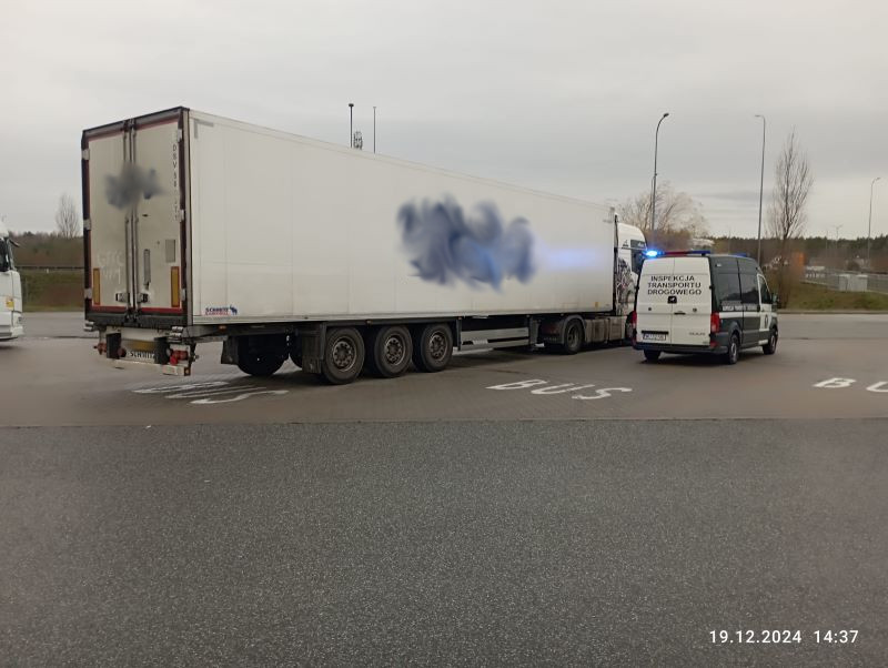W momencie zatrzymania do kontroli pojazdem tym wykonywany był międzynarodowy transport rzeczy z Polski do Szwecji. Środkiem transportu kierował obywatel Macedonii, a więc kraju niebędącego członkiem Unii Europejskiej. W związku z tym pracodawca powinien uzyskać dla niego świadectwo kierowcy, potwierdzające m.in. legalność jego zatrudnienia. Kontrola wykazała, że kierowca nie posiada jednak takiego dokumentu. Ponadto ciągnik, którym wykonywany był transport nie posiadał aktualnego badania technicznego. Dodatkowo jedna z jego opon była tak bardzo zużyta, że jej dalsza eksploatacja mogła doprowadzić do niebezpiecznego wypadku.