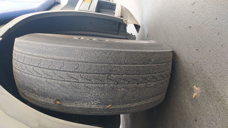 W wyniku wstępnej kontroli stanu technicznego stwierdzono, że ciągnik samochodowy posiada usterki opon osi kierowanej i w takim stanie nie może poruszać się po drogach.