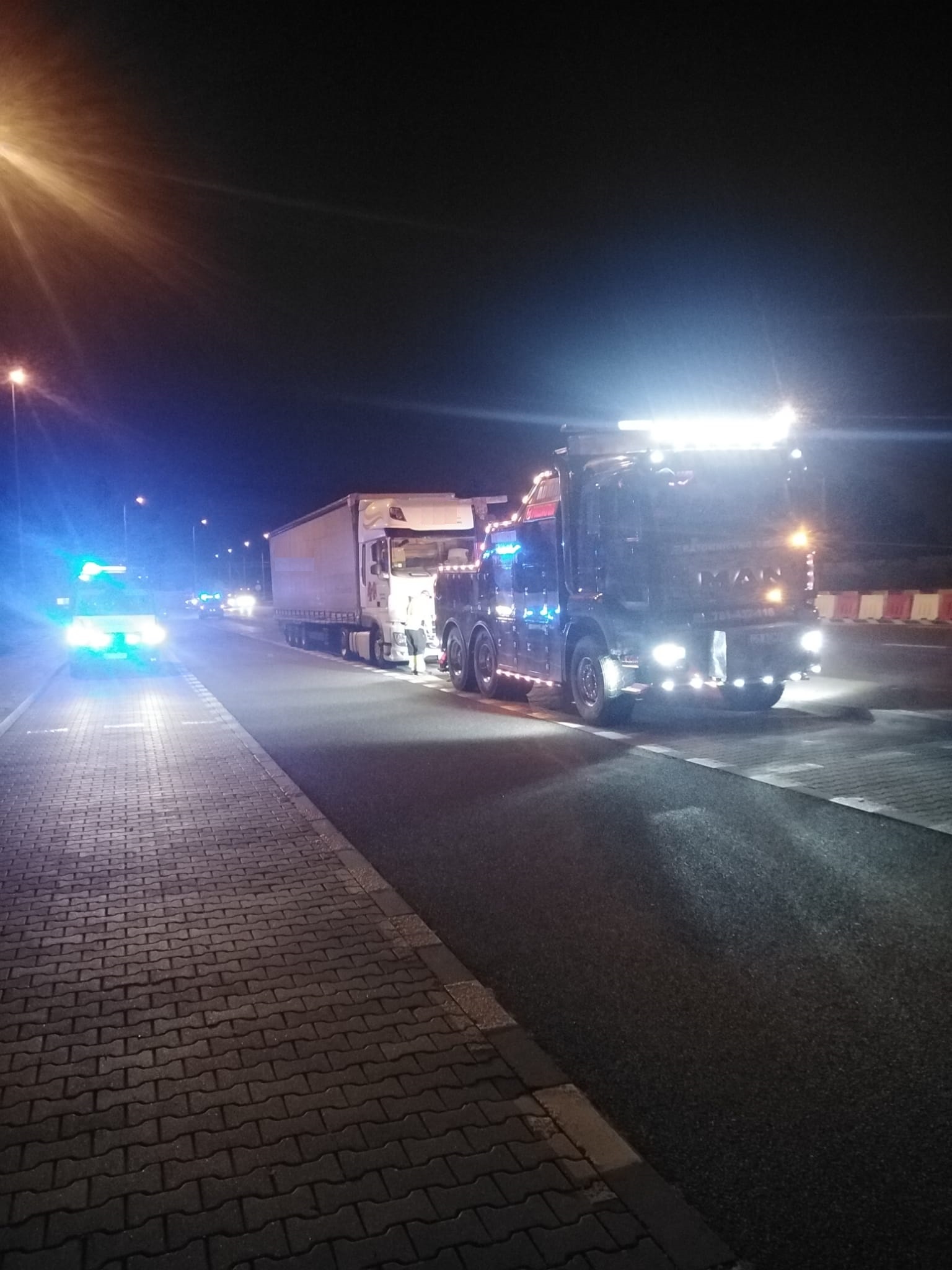 Kilka godzin później inspektorzy patrolujący drogę ekspresową S8 zauważyli zespół pojazdów, którego naczepa wydawała się być zbyt wysoką. Po doprowadzeniu zestawu na miejsce kontroli okazało się, że kontrolowany zestaw należący do przewoźnika z Ukrainy, jest o 12 centymetrów za wysoki. Niestety dla przewoźnika konstrukcja ciągnika i naczepy uniemożliwiała doprowadzenie ich przez kierowcę do normatywności. Sytuacja ta powodowała zaś konieczność uzyskania odpowiedniego zezwolenia na przejazd pojazdu nienormatywnego. Dlatego i ten samochód trafił na parking w oczekiwaniu na stosowny dokument.