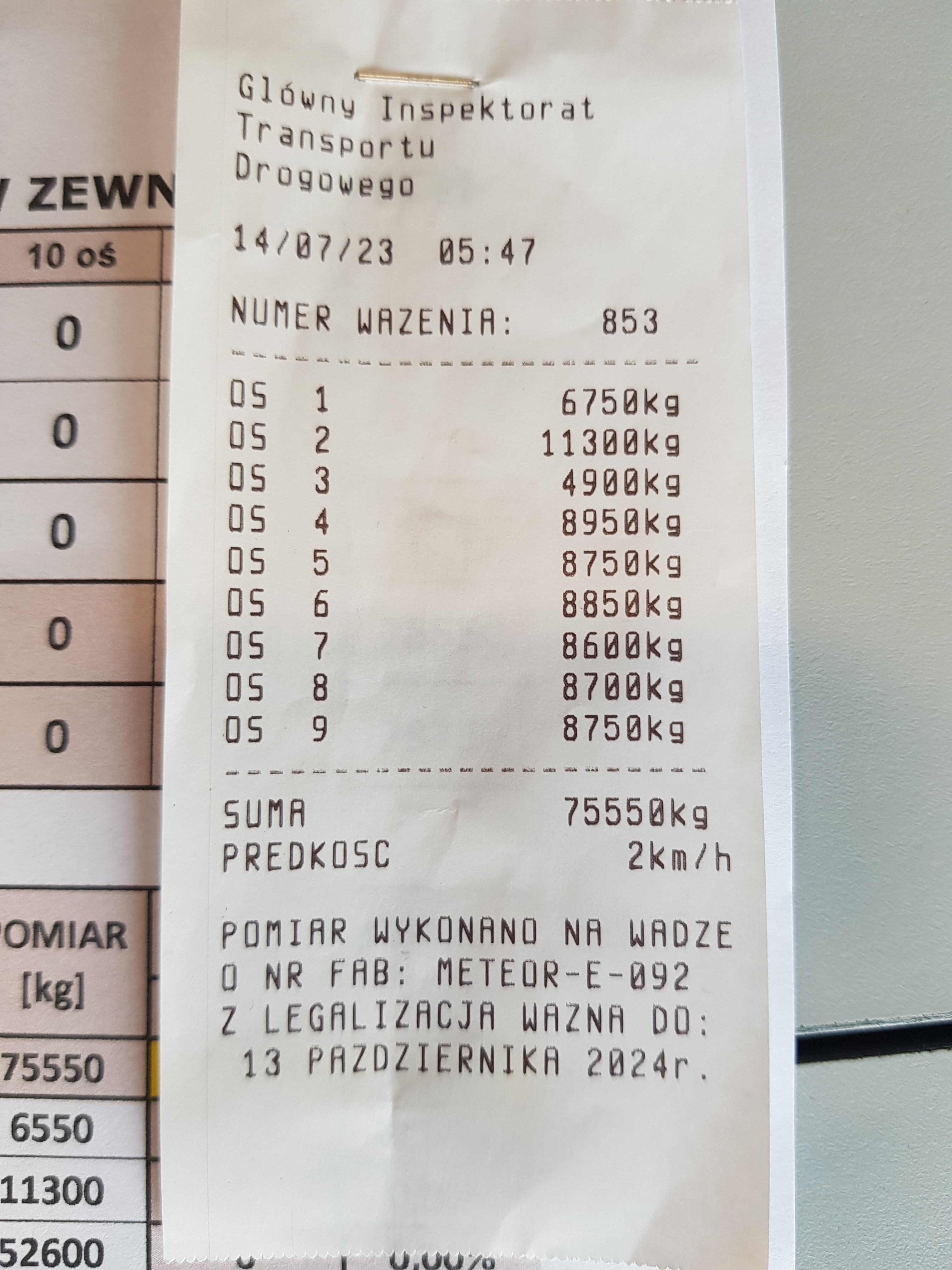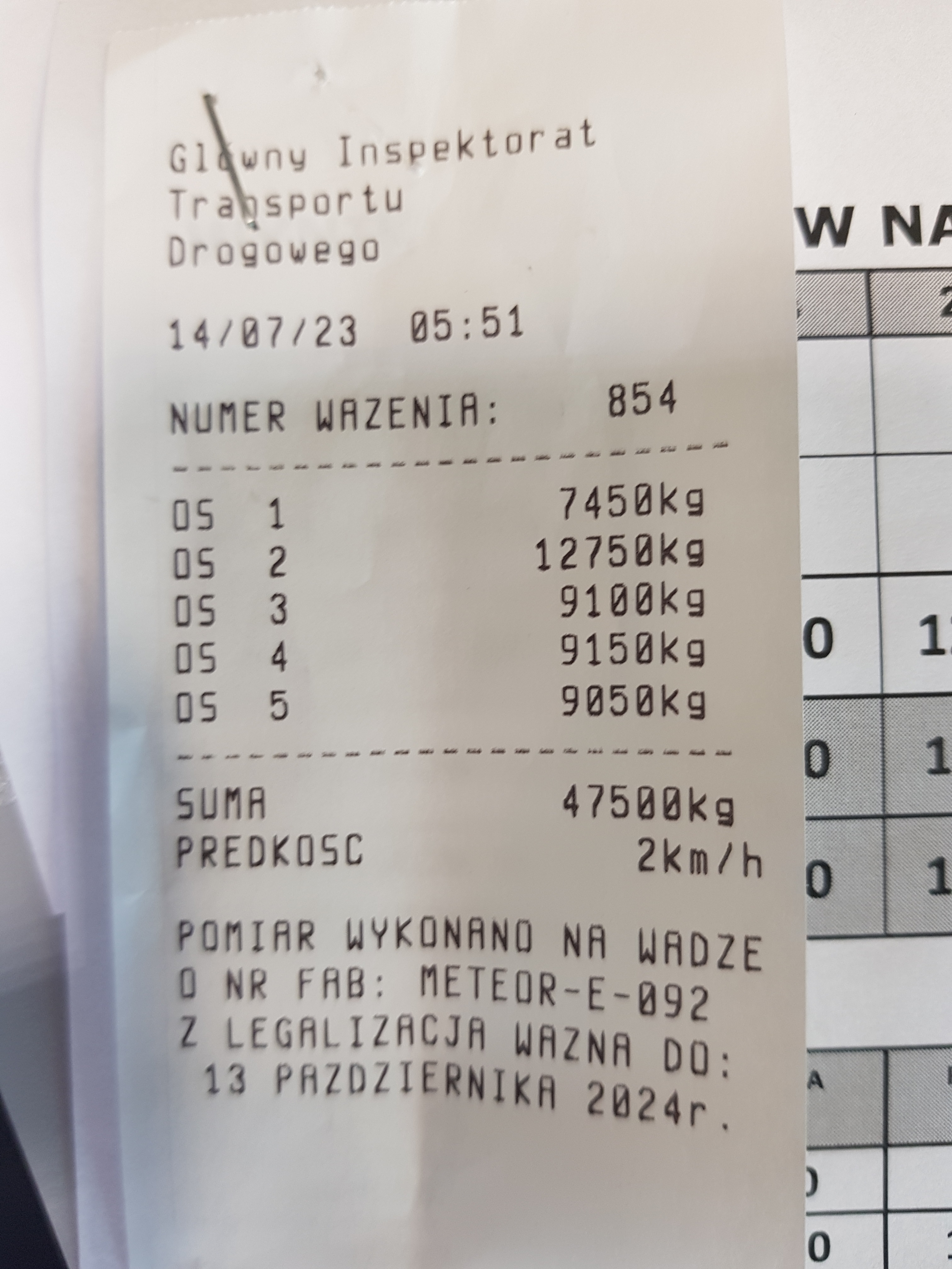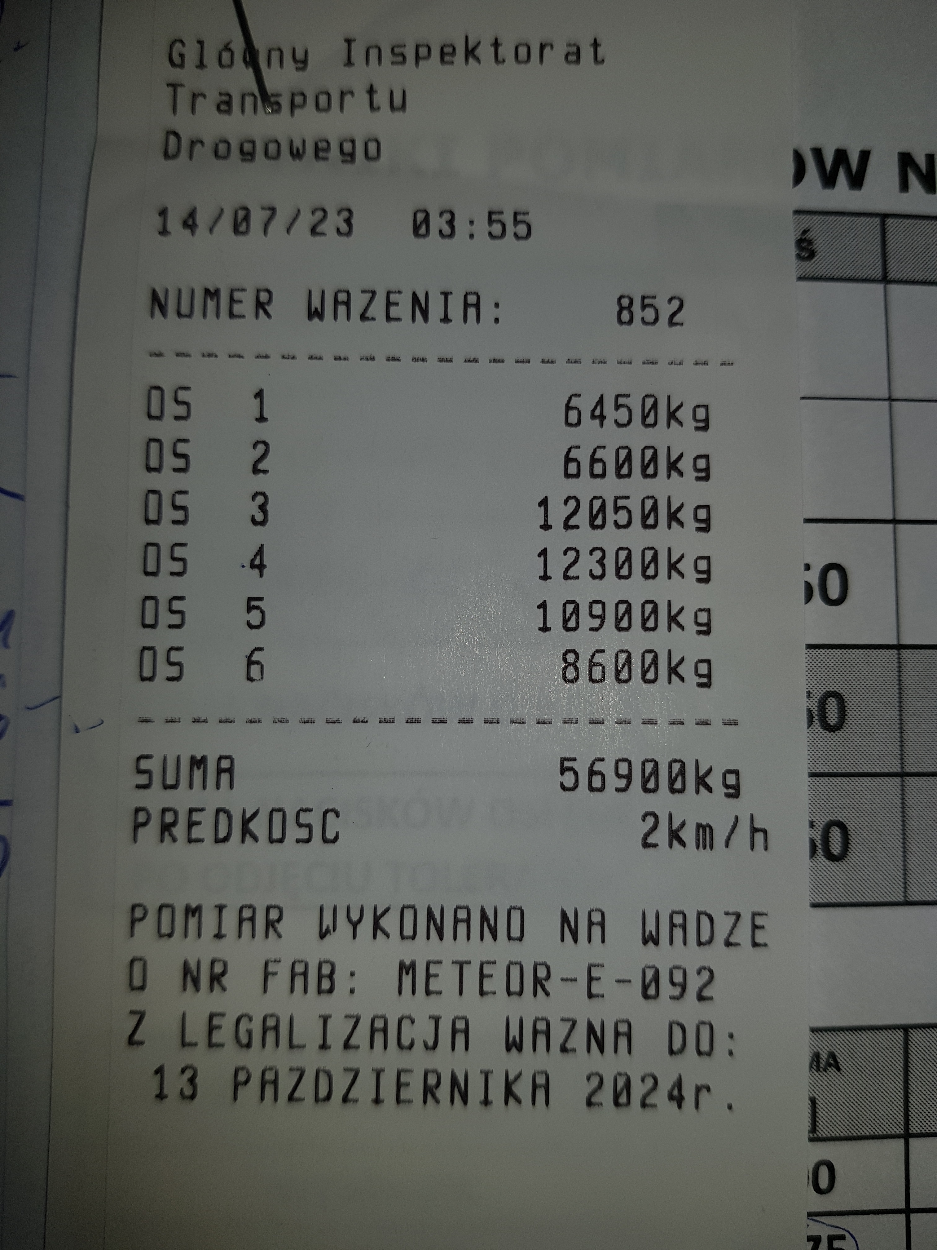 Niestety również nocą z 13 na 14 lipca wagi wykorzystywane w piotrkowskim oddziale nie odpoczywały. Jako pierwszy przejechał przez nie pojazd wiozący zbiorniki betonowe. Niestety wzorem swych poprzedników kontrolowanych w nocy z niedzieli na poniedziałek jego masa przekraczała wartość dopuszczalną o ponad 40%, co pociągało za sobą i przekroczenia dopuszczalnych nacisków osi.