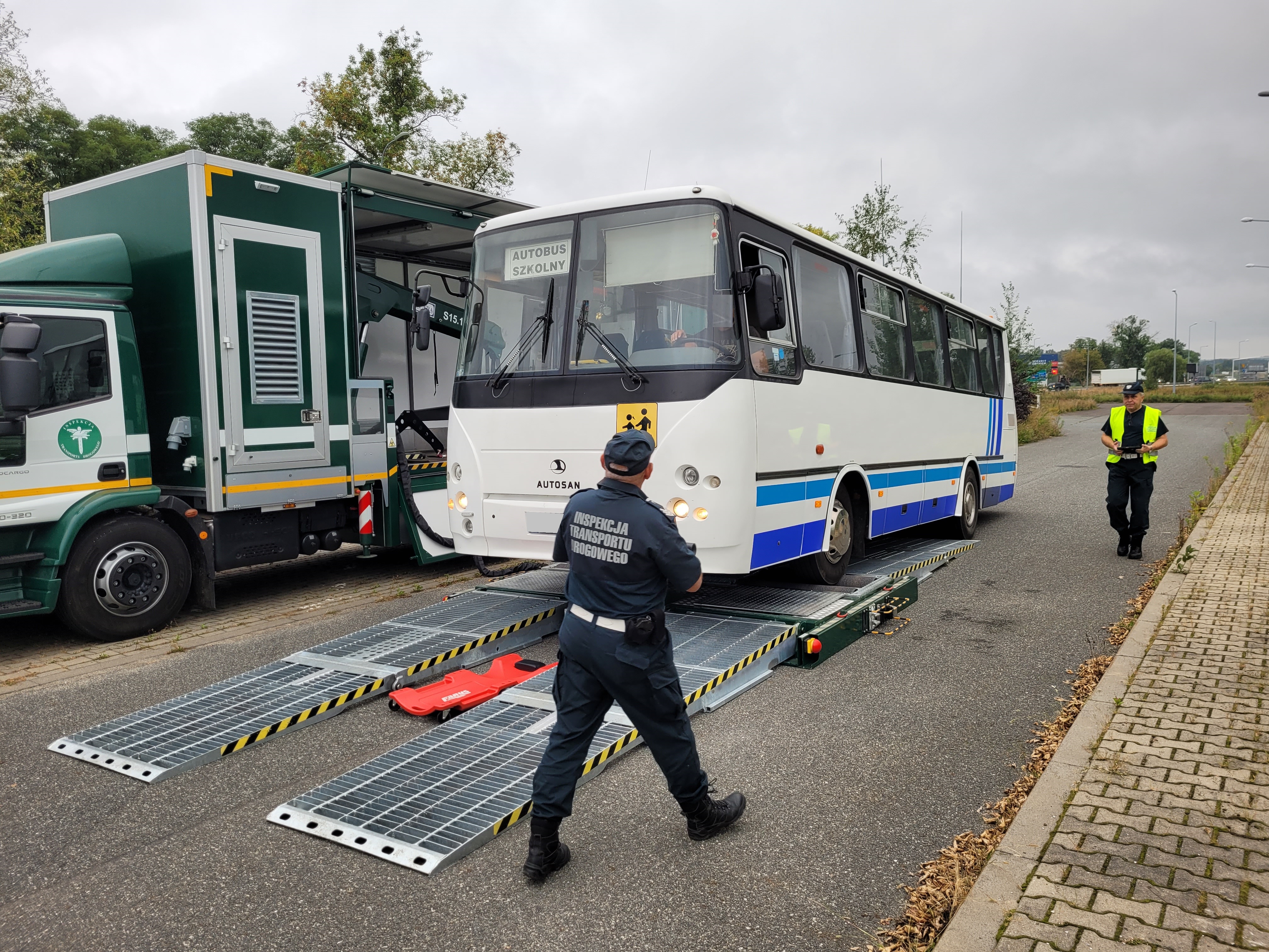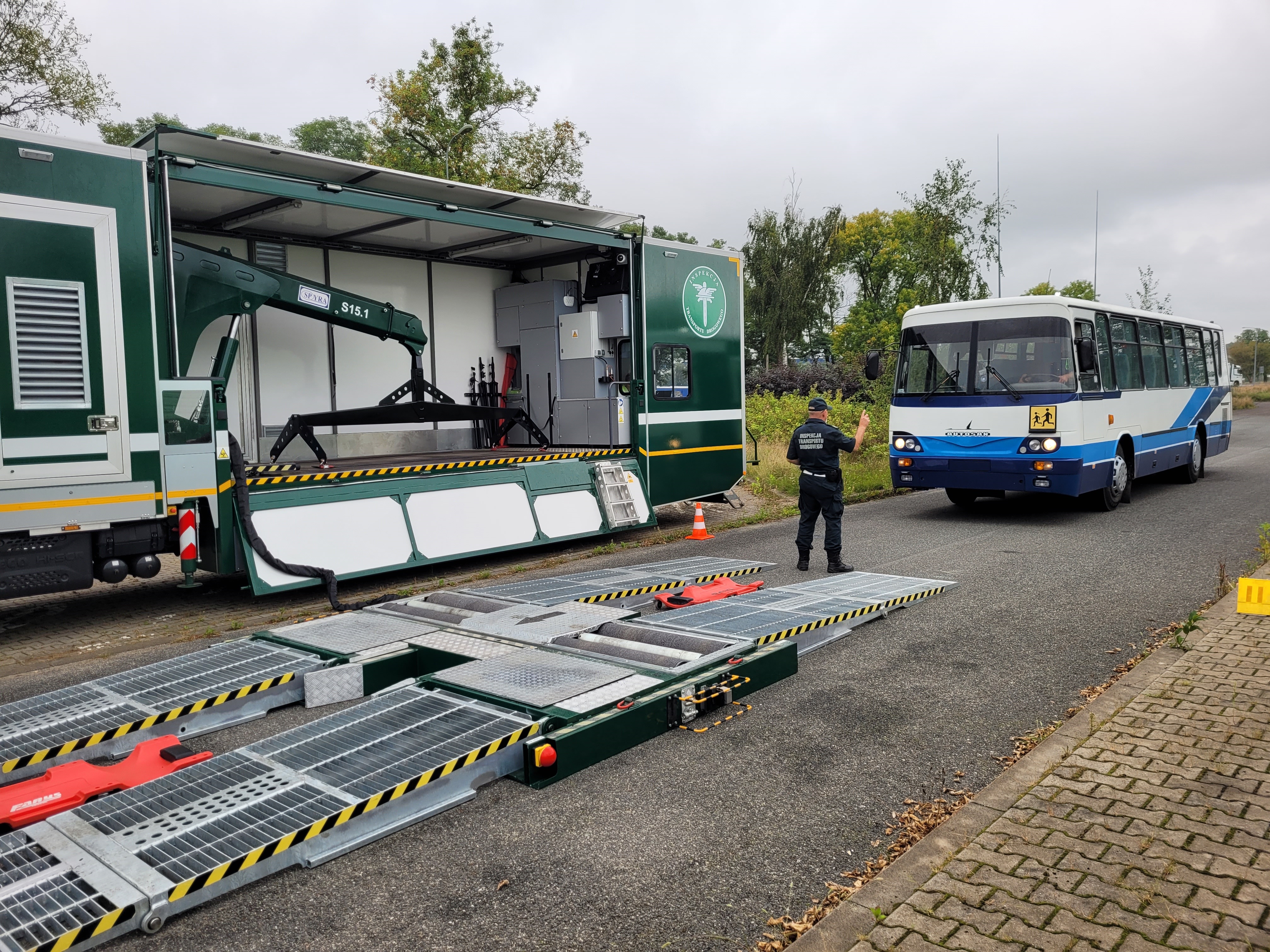 Kontrole autobusów pracowniczych i szkolnych z wykorzystaniem Mobilnej Stacji Diagnostycznej.