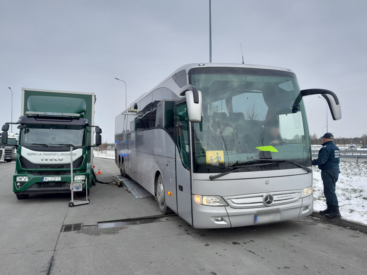 W związku z rozpoczęciem ferii zimowych w województwie łódzkim, inspektorzy WITD w Łodzi w dniu 15.02.2025 r. przeprowadzili wzmożone kontrole autobusów przewożących dzieci i młodzież na wypoczynek. Szczegółowej kontroli stanu technicznego, przy wykorzystaniu Mobilnej Stacji Diagnostycznej, poddano 27 pojazdów, z czego w dwóch przypadkach ujawniono poważne usterki, co stanowiło podstawę do zatrzymania dowodów rejestracyjnych. Sprawdzano również trzeźwość kierowców, przestrzeganie norm czasu pracy oraz wymagane uprawnienia i dokumenty. W wyniku powyższych działań ujawniono także wykonywanie przewozu osób autobusem wyposażonymw tachograf, który nie został poddany przeglądowi.