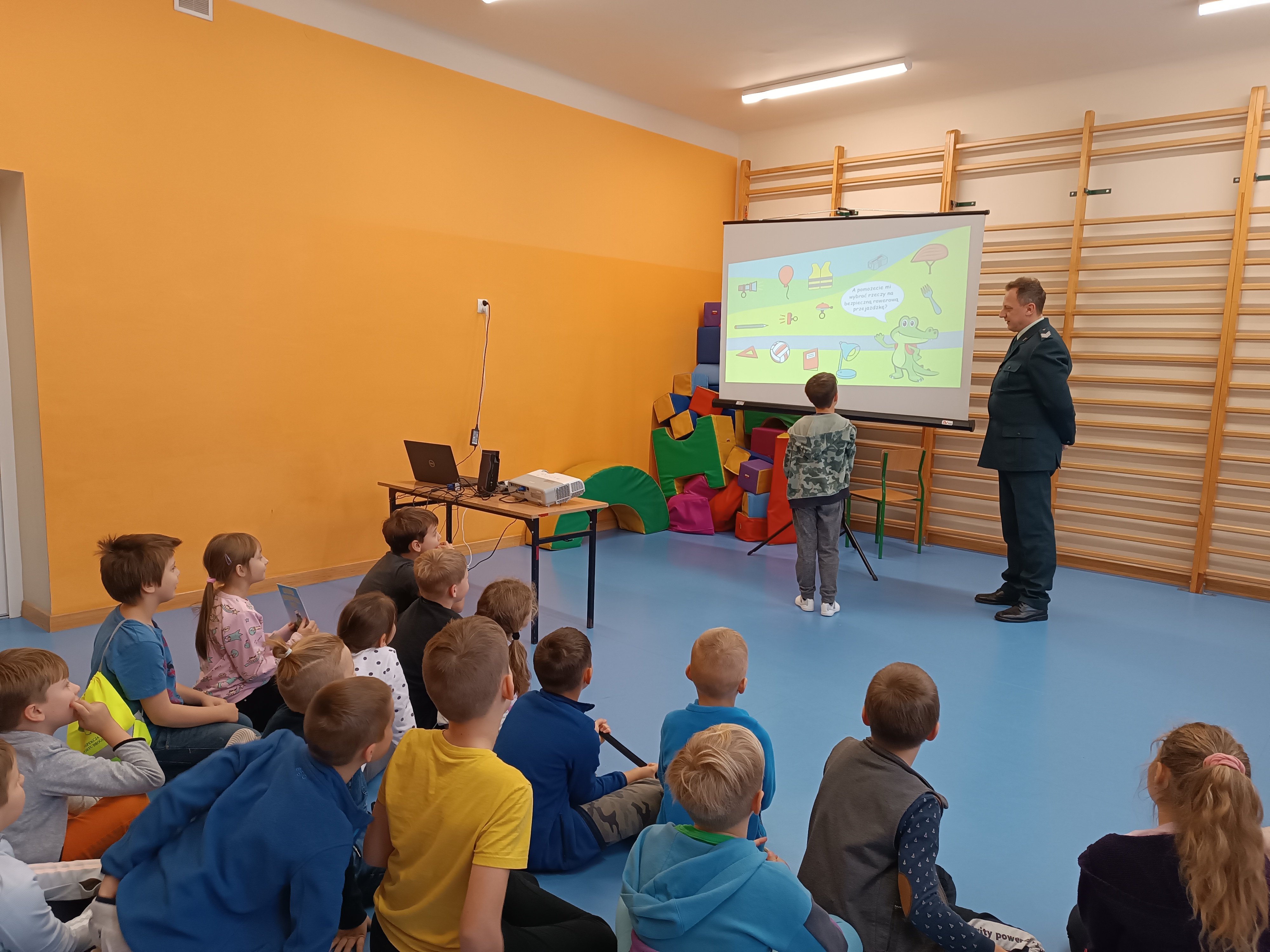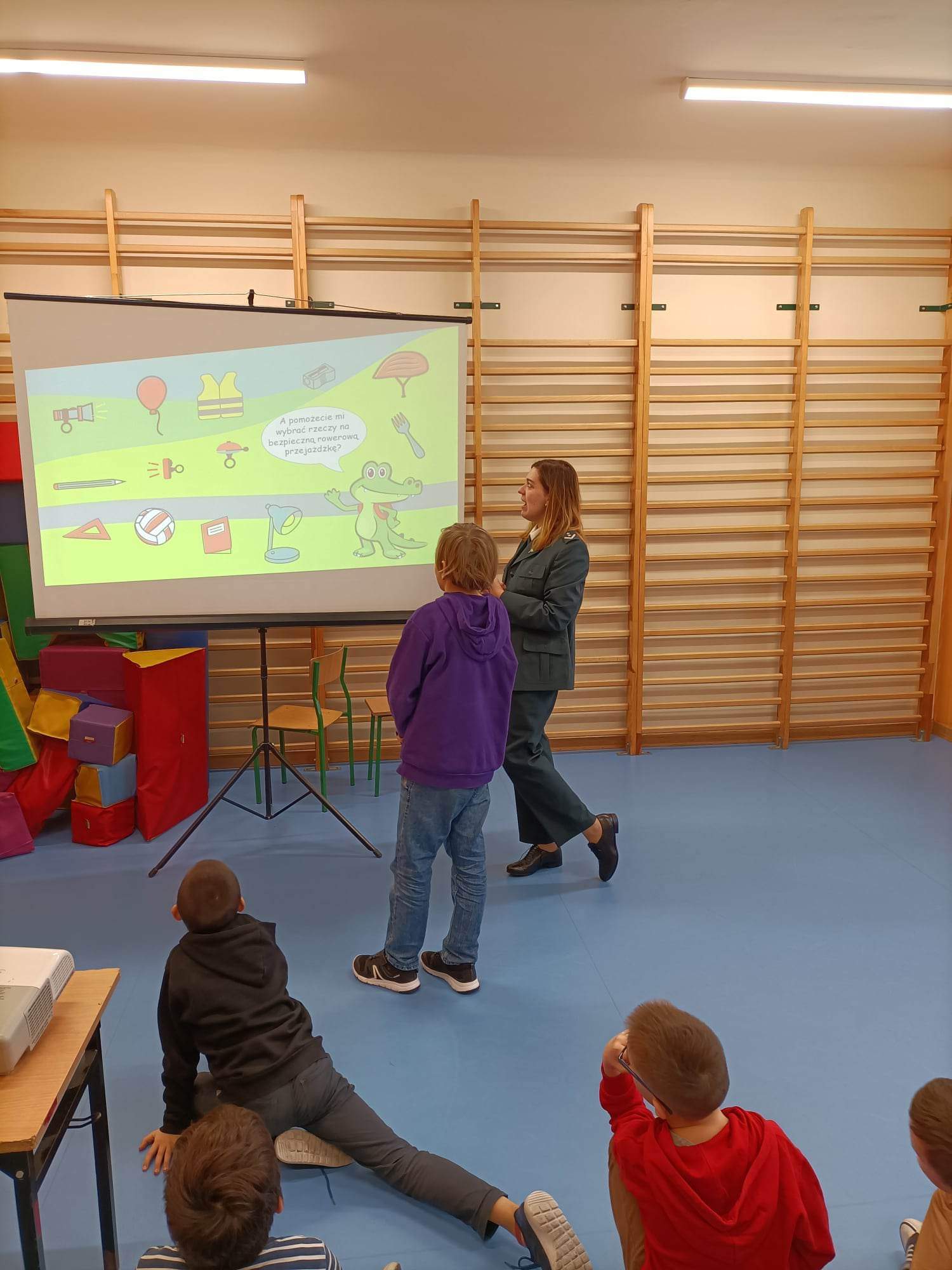 Najmłodsi uczestnicy ruchu drogowego zostali zapoznani z podstawowymi zasadami bezpieczeństwa tj. przechodzenia w wyznaczonych miejscach, czy noszenia elementów odblaskowych. Za pomocą interaktywnej prezentacji inspektorzy przypomnieli o konieczności zapinania pasów bezpieczeństwa i zachowaniu szczególnej ostrożności podczas zabaw na świeżym powietrzu. Uczniowie mogli wykorzystać zdobytą wiedzę podczas wykonywania zadań, za które otrzymali upominki. Każdy z uczestników mógł chociaż przez chwilę poczuć się jak prawdziwy inspektor wkładając kamizelkę odblaskową czy czapkę.