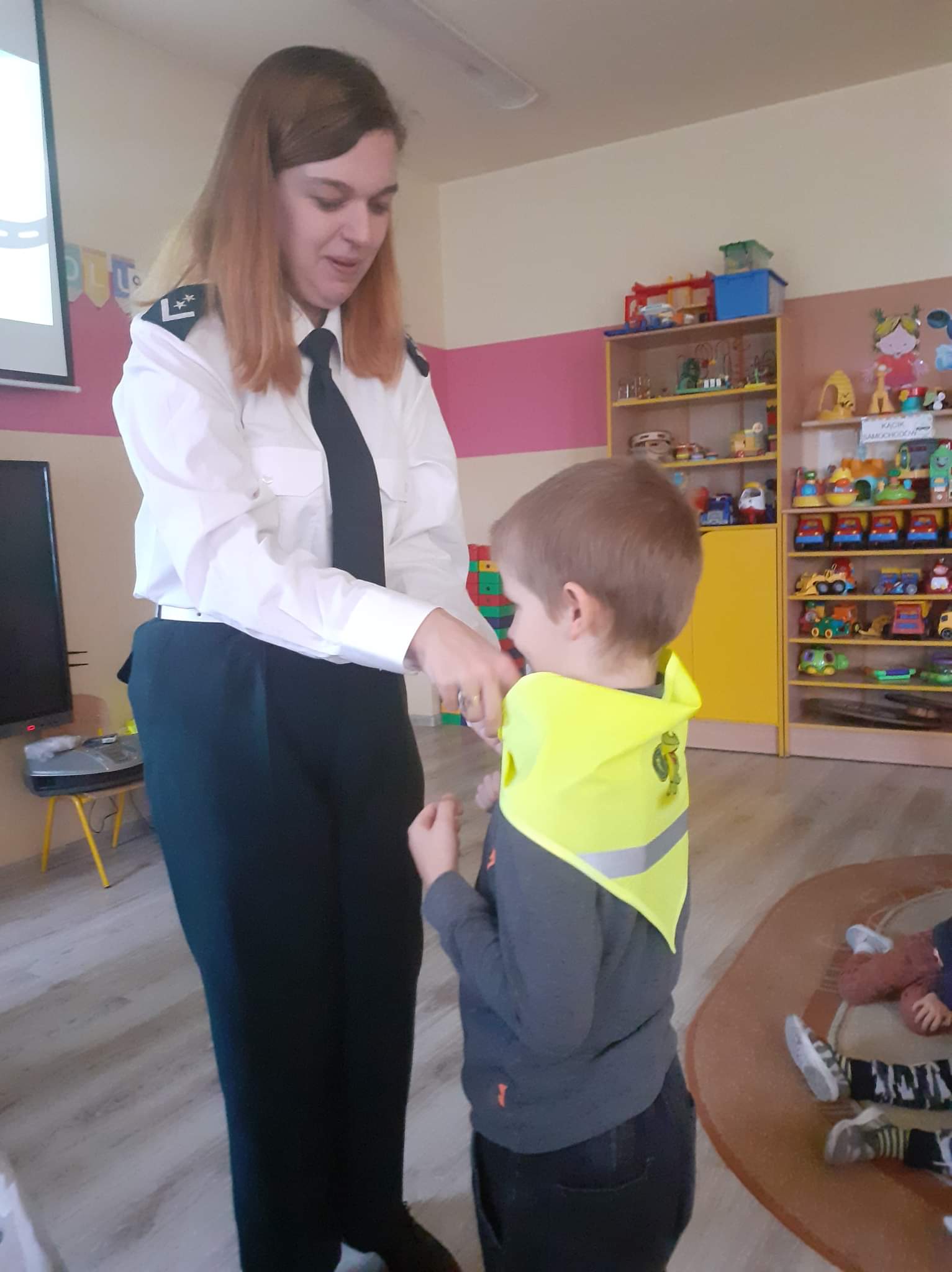 Najmłodsi uczestnicy ruchu drogowego zostali zapoznani z podstawowymi zasadami bezpieczeństwa tj. przechodzenia w wyznaczonych miejscach, czy noszenia elementów odblaskowych. Za pomocą interaktywnej prezentacji inspektorzy przypomnieli o konieczności zapinania pasów bezpieczeństwa i zachowaniu szczególnej ostrożności podczas zabaw na świeżym powietrzu. Uczniowie mogli wykorzystać zdobytą wiedzę podczas wykonywania zadań, za które otrzymali upominki. Każdy z uczestników mógł chociaż przez chwilę poczuć się jak prawdziwy inspektor wkładając kamizelkę odblaskową czy czapkę.