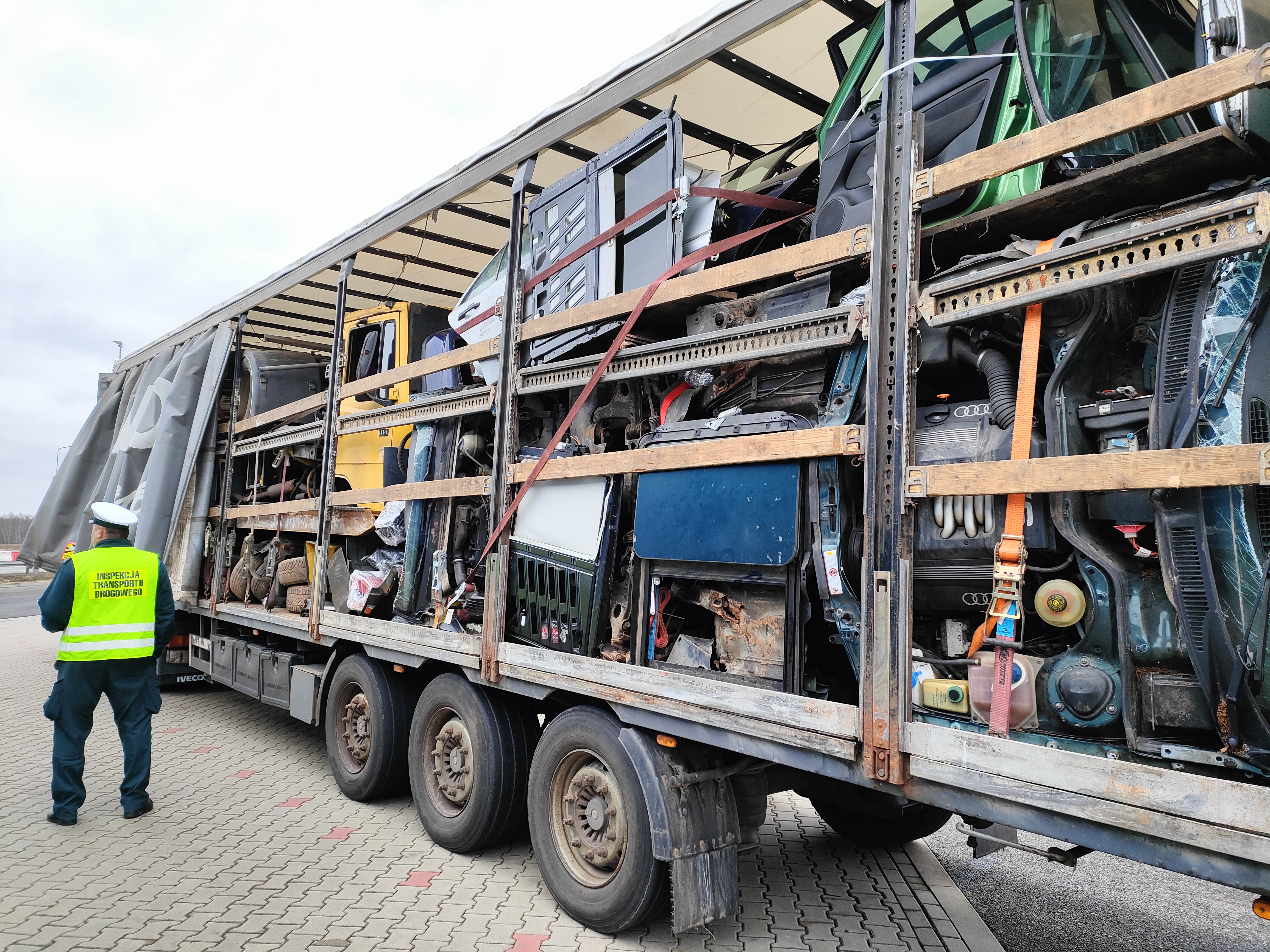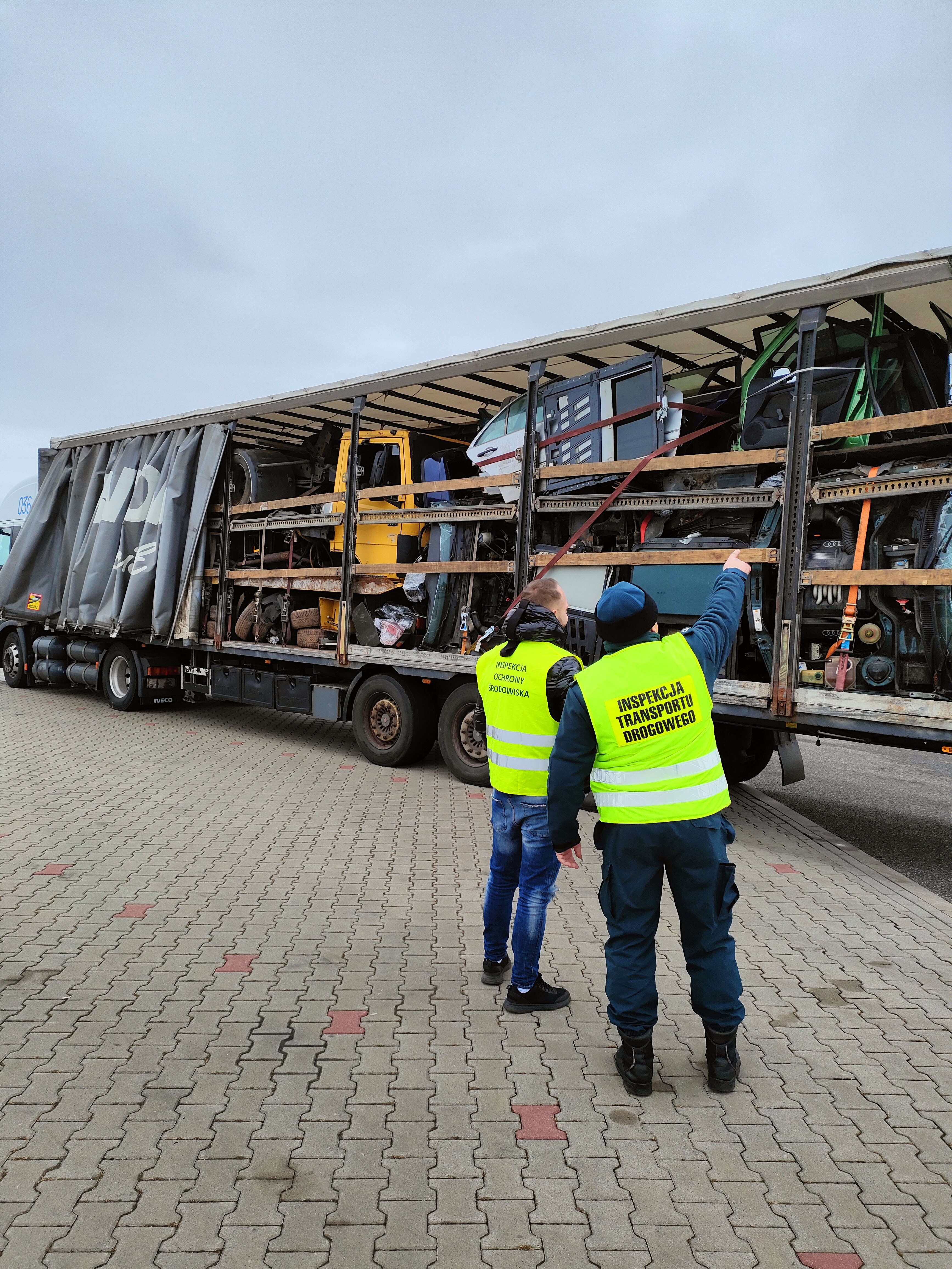 w zakresie przewozów materiałów niebezpiecznych i zezwoleń w międzynarodowym transporcie drogowym. Podczas prowadzenia czynności kontrolnych zatrzymano zespół pojazdów należący do uzbeckiego przewoźnika. Kierowca nie posiadał zezwolenia na wykonywanie międzynarodowego przewozu drogowego rzeczy oraz dokumentu przewozowego. Po skontrolowaniu przestrzeni ładunkowej Inspektorzy ujawnili nielegalny przewóz odpadów tranzytem przez Polskę. Na miejsce wezwano Inspektorów Wojewódzkiego Inspektoratu Ochrony Środowiska z Łodzi w celu odpowiedniego zakwalifikowania odpadów. Dodatkowo pojazdy nie miały ważnych badań technicznych, przewóz nie został zgłoszony do odpowiedniego rejestru odpadów, a kierowca naruszył przepisy dotyczące czasu pracy. Nielegalny transport odpadów skierowano na wyznaczony parking.