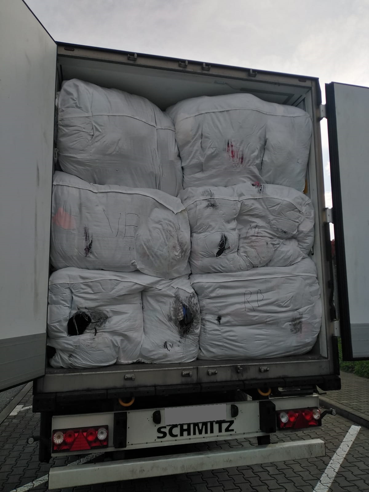 26 października na autostradzie A2 w okolicach Strykowa inspektorzy łowickiego oddziału WITD Łódź wspierani przez inspektorów Wojewódzkiego Inspektoratu Ochrony Środowiska w Łodzi prowadzili kontrole w ramach operacji DEMETER. Jak informowaliśmy wcześniej akcja ta polega na kontroli pojazdów przewożących odpady w ruchu międzynarodowym i krajowym. Jednym z skontrolowanych był zespół pojazdów wykorzystywany przez przewoźnika z Litwy. W czasie oględzin ładowni i analizy towarzyszących przewozowi dokumentów stwierdzono, że pojazdem tym wiezione są odpady ubrań przeznaczone do utylizacji. W takich przypadkach na samochodzie powinno się umieścić białą tabliczkę z literą „:A”. Niestety oznakowania takiego nie było co więcej okazało się, że wykonawca przewozu nie uzyskał też wpisu rejestrowego wymaganego przy transporcie odpadów przez terytorium Rzeczypospolitej Polskiej. Co więcej wkrótce potem okazało się, że przewoźnik zaniedbał i obowiązek zgłoszenia transportu w systemie monitorowania przewozów tzw. SENT.