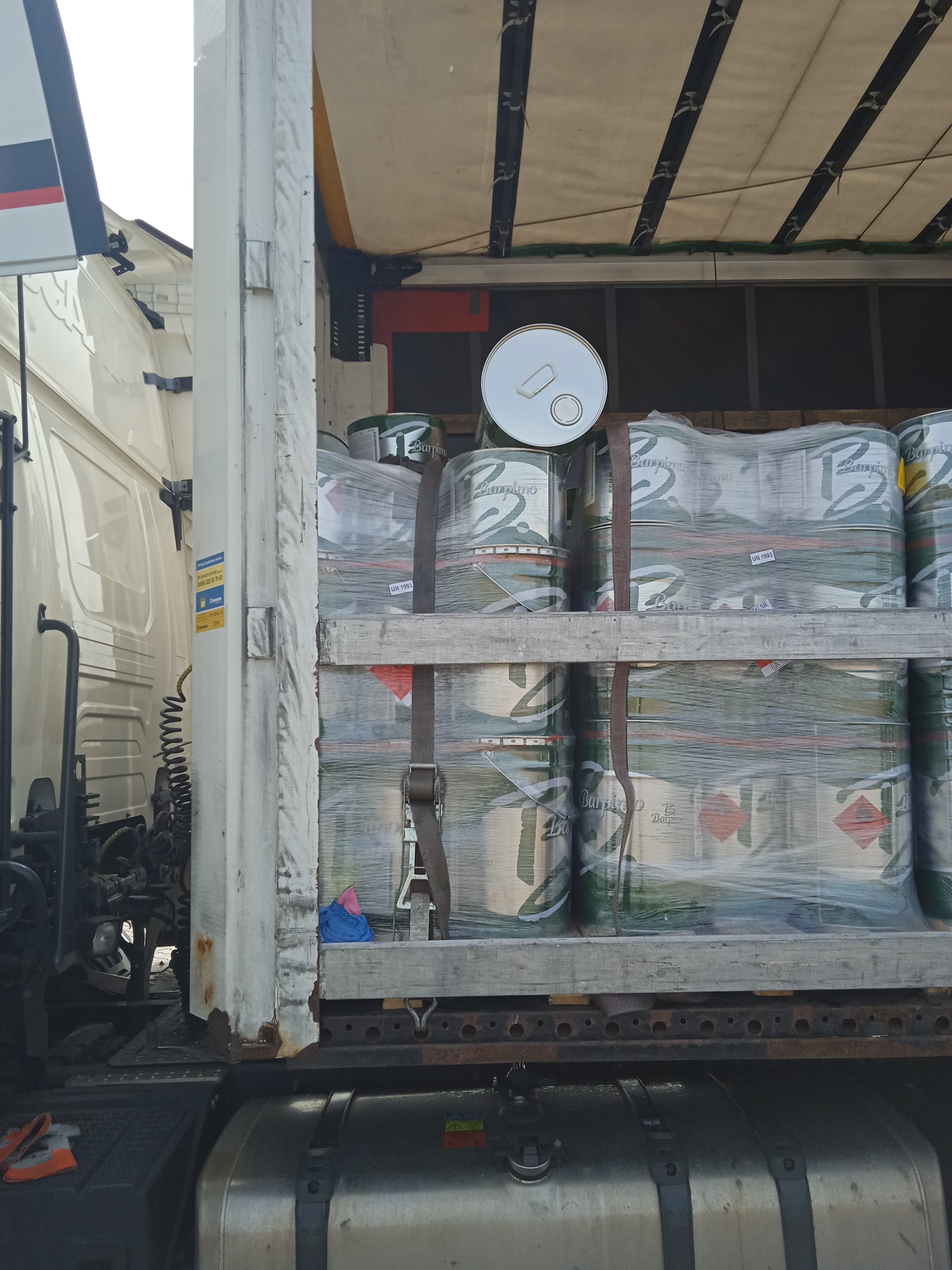 Ogromne zaniepokojenie wywołał zapach żywicy wydobywający się z pojazdu wjeżdżającego na punkt kontrolny na którym pracowali inspektorzy WITD w Łodzi. Kiedy samochód się zatrzymał wystarczył jeden rzut oka na jego ramę i zbiornik aby wiedzieć, że to nie będzie rutynowa kontrola. Wszystkie te elementy, a nawet podpory naczepy pokryte były bowiem bursztynową substancją. Po otwarciu samochodu okazało się, że w zbiornikach metalowych przewożona jest żywica zaklasyfikowana przez jej nadawcę jako materiał ciekły łatwopalny. Niestety kilka z tych zbiorników było pękniętych i to z nich wylała się przewożona substancja. Co więcej kierowca pojazdu był świadom sytuacji gdyż aby ograniczyć wyciek ułożył uszkodzone opakowania poziomo na pozostałym ładunku i kontynuował jazdę. Na szczęście po wydostaniu się z opakowań ładunek w znacznej części się utwardził co ograniczyło zagrożenie. Mimo wszystko nie sposób było zezwolić kierowcy na jazdę z ładunkiem w takim stanie, co też niezwłocznie uczyniono wstrzymując dalszą podróż do czasu zapewnienia opakowań awaryjnych i oczyszczenia pojazdu z pozostałości substancji.