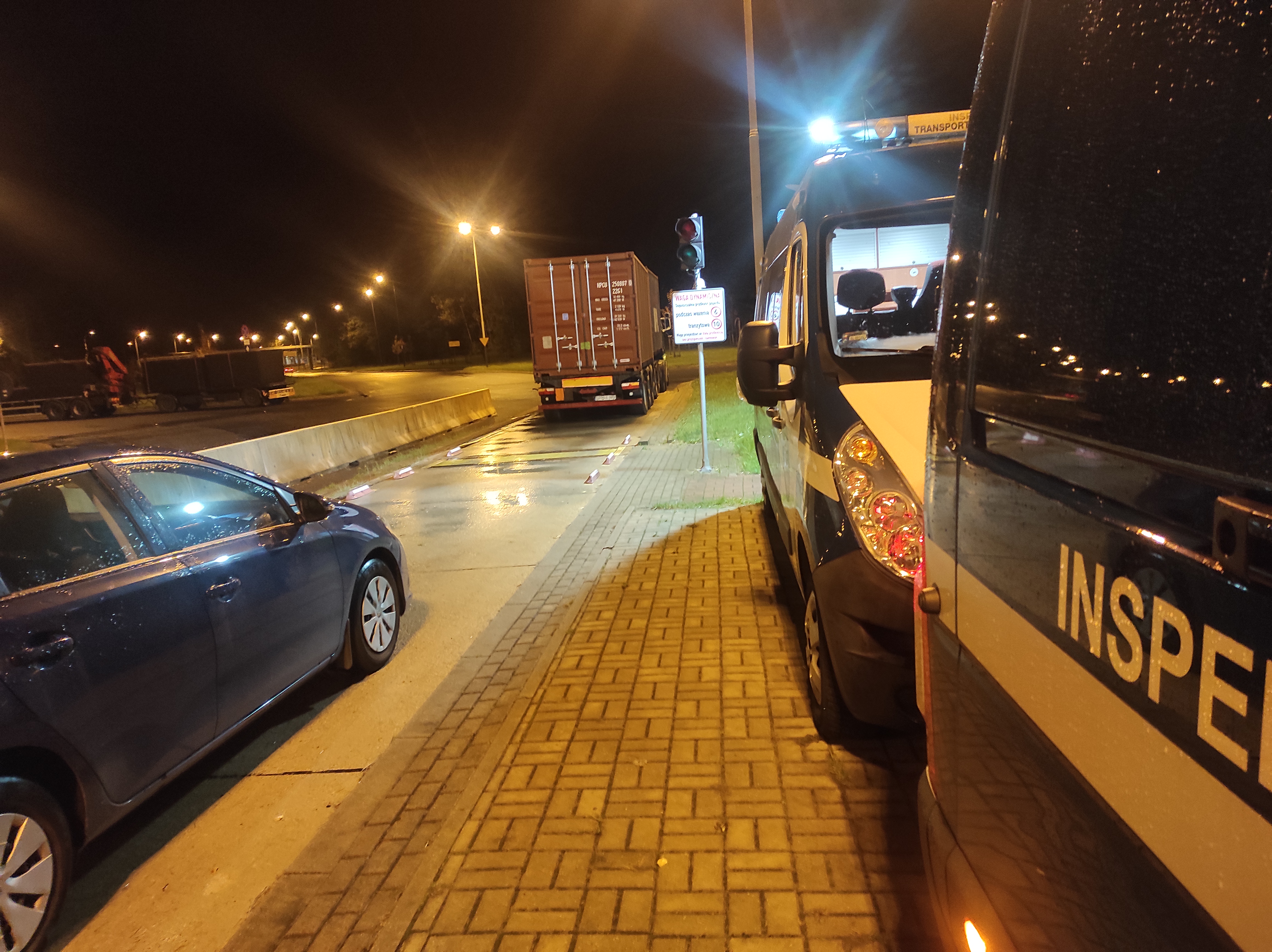 W nocy z 13 na 14 października okolice skrzyżowań autostrady A1 z autostradą A2 i drogą ekspresową S8 znalazły się pod obserwacją inspektorów łódzkiego WITD. Niestety był to pracowita okres dla kontrolujących. Pierwszym pojazdem który trafił na inspekcyjną wagę był zespół pojazdów przewożący zbiorniki betonowe, którego masa całkowita sięgała blisko 65 ton. Wkrótce potem dołączył do niego zestaw wiozący kontenery, który ważył ponad 70 ton. Co więcej z dokumentów przewozowych które okazał kontrolowany kierowca wynikało, że sam ładunek swą masą o 10 ton przekraczał dopuszczalną masę całkowitą wyznaczoną dla tego typu pojazdów. Dwie kolejne zważone jednostki transportowe przy ciężarze wynoszącym blisko 50 ton, nie wzbudziły w tej sytuacji szczególnych emocji wśród kontrolujących. Każde z skontrolowanych aut wiozło ładunek podzielny czyli taki który bez generowania nadmiernych kosztów lub komplikacji technicznych może zostać podzielony na mniejsze części. Zgodnie z przepisami w takich sytuacjach nie ma możliwości pozyskania i wykorzystywania jakichkolwiek zezwoleń na wykonywanie przewozów nienormatywnych, więc pojazdy trafiły na parking celem ich przeładowania.