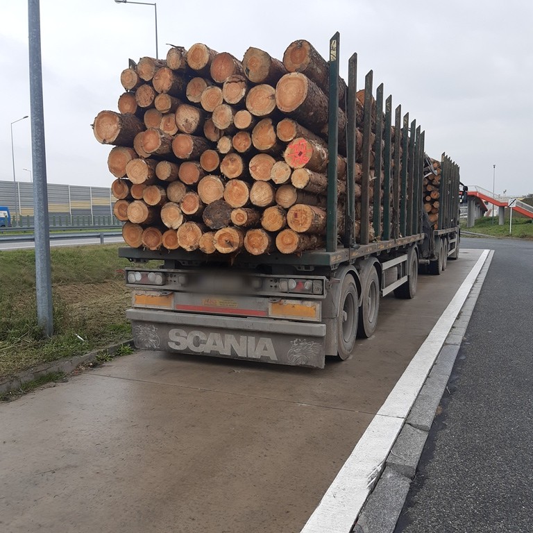 Przeciążone transporty drewna zatrzymane na S8 - 10 ton ponad normę