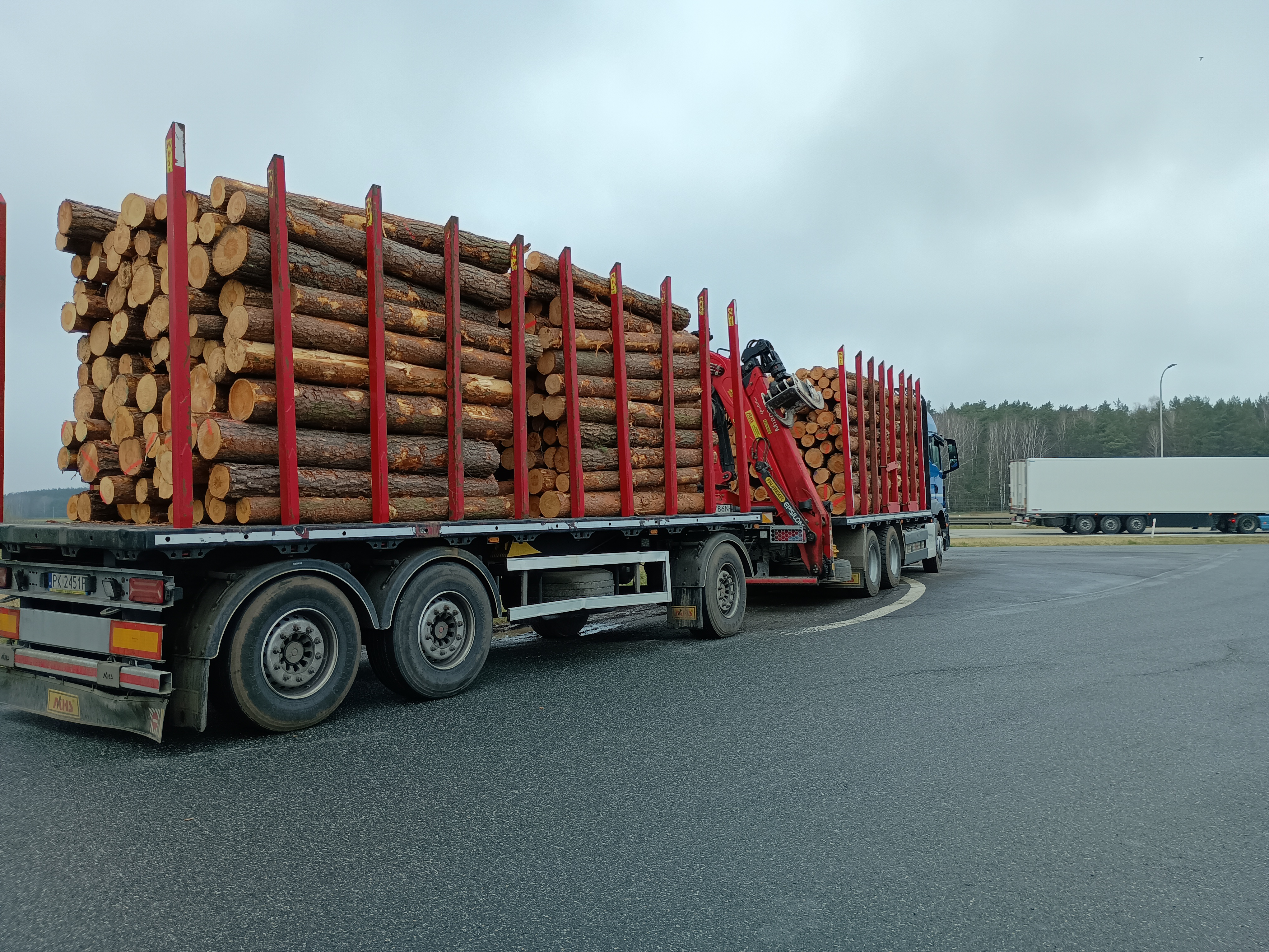 W dniu 27.03.2025 r. inspektorzy z piotrkowskiego oddziału WITD w Łodzi przeprowadzili kontrole dwóch zespołów pojazdów należących do krajowych przewoźników, przewożących drewno sosnowe. Dokonane pomiary i szacunkowe obliczenia wskazywały, że w obydwu przypadkach mogło dojść do znaczącego przekroczenia dopuszczalnej masy całkowitej pojazdów. W związku z powyższym zostały one skierowane na wagę, gdzie stwierdzono przeładowanie zespołów odpowiednio o 11,5 tony i blisko 13 ton. Po dokonaniu częściowego rozładunku, pojazdy zostały dopuszczone do dalszej jazdy, zaś wobec przewoźników wszczęto postępowania administracyjne.
