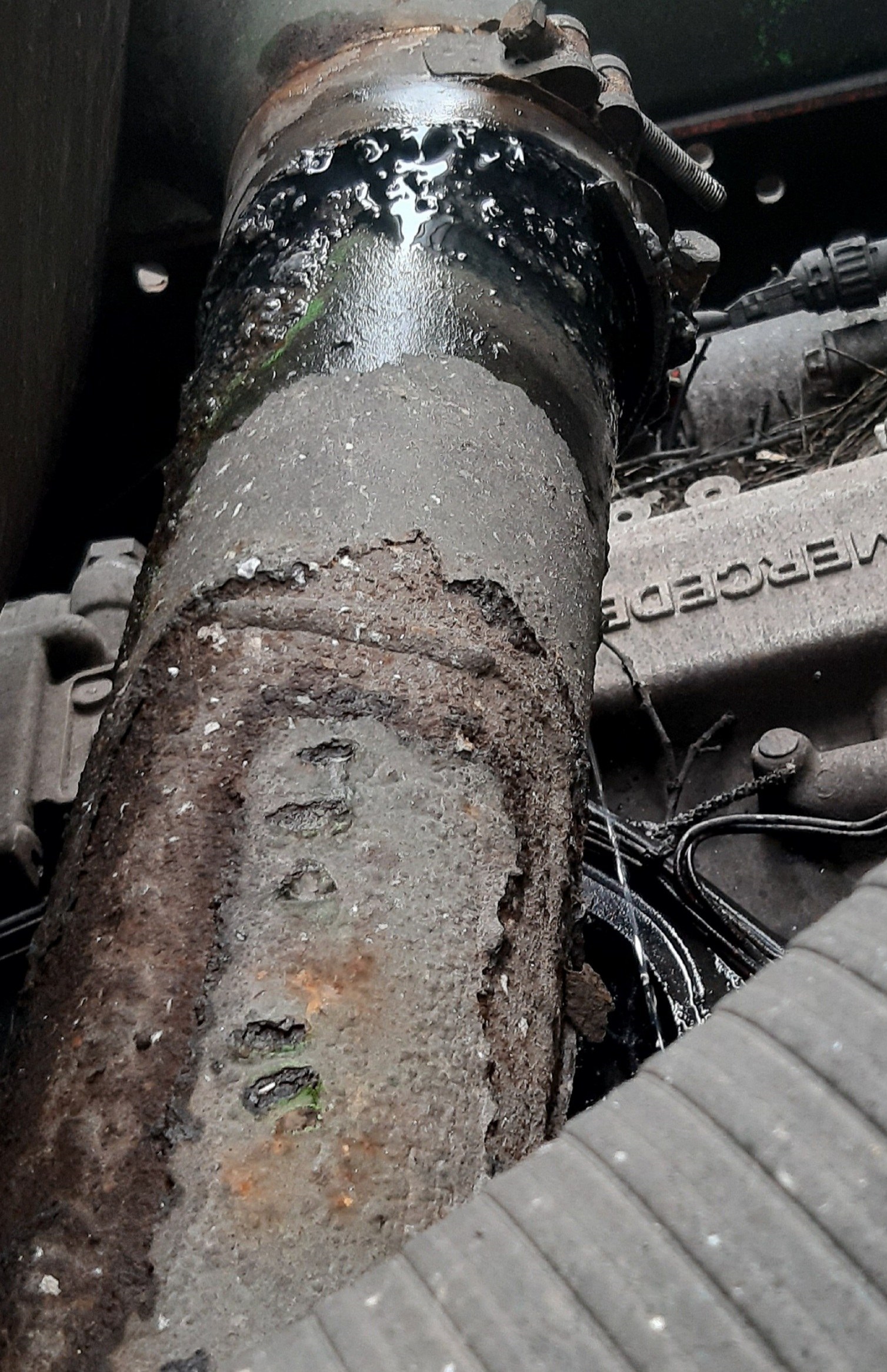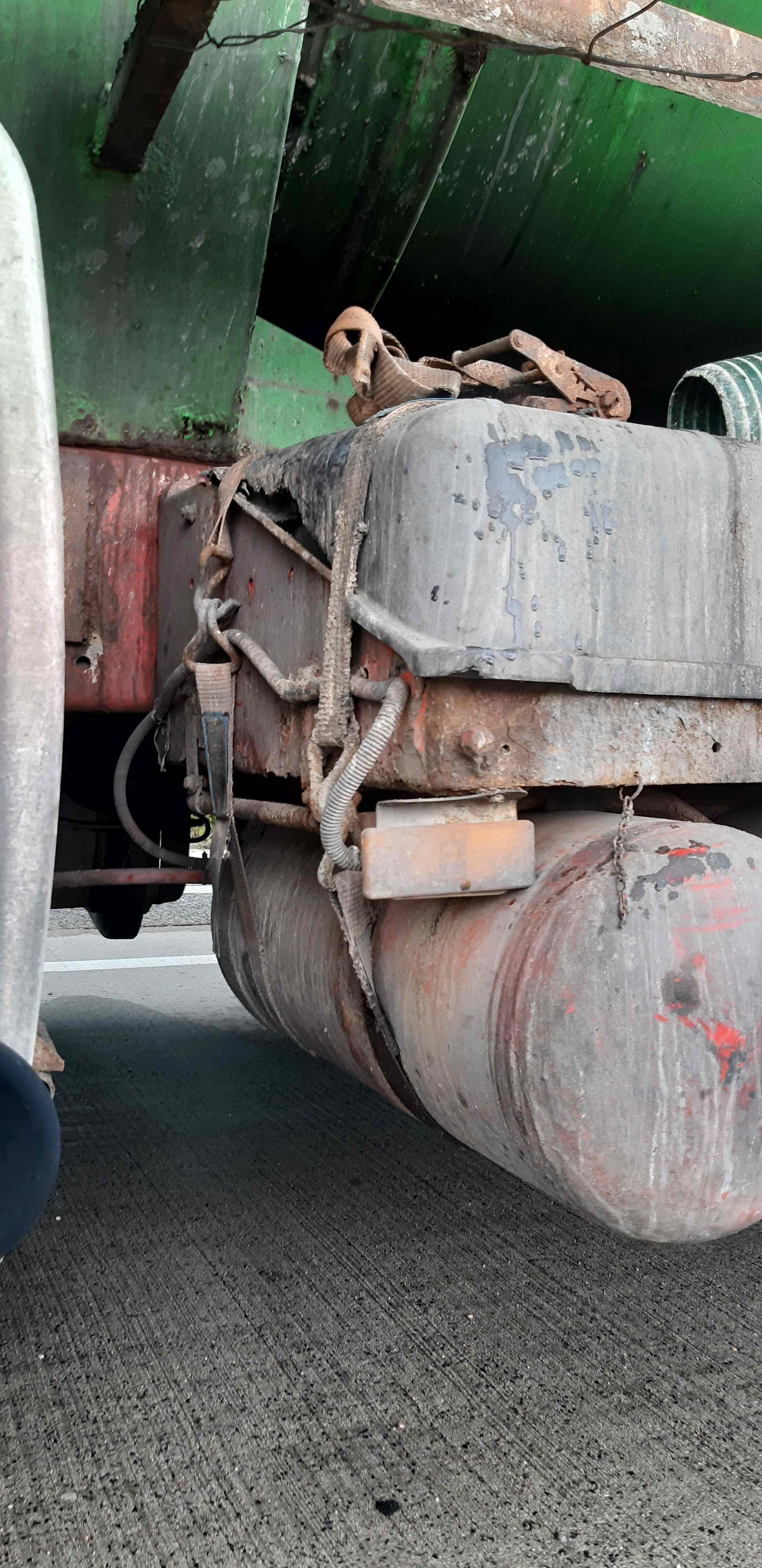 Już pobieżne spojrzenie na ramę pojazdu pozwoliło na zauważenie licznych pęknięć jej elementów. Jeden ze zbiorników pojazdu przymocowany był do ramy za pomocą pasów do mocowania ładunków, a błotniki w jakie wyposażony był pojazd były zbyt wąskie w stosunku do zastosowanych kół i opon. Dodatkowo wiele z elementów pojazdu pokrytych było olejem i smarami, które ściekały na drogę powodując powstawanie tłustych i niebezpiecznych plam. Samochód też był niebezpieczny dla obsługującego go kierowcy, gdyż stopnie po jakich dostawał się on do kabiny były niestabilne. „Łyse” opony dopełniały tylko ten dramatyczny obraz.