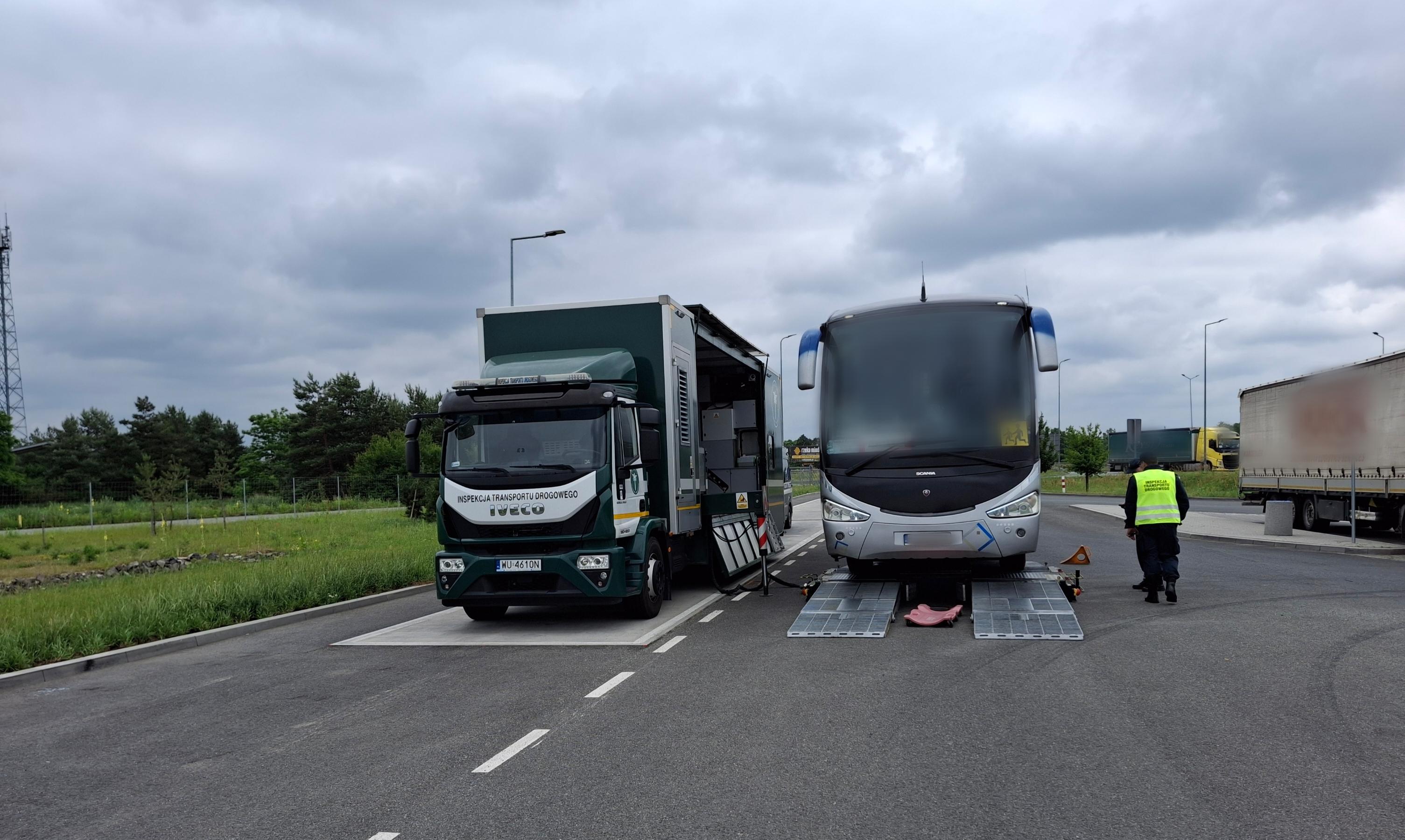 Stan techniczny zatrzymanych do kontroli autobusów sprawdzany był na trzech Mobilnych Jednostkach Diagnostycznych będących na wyposażeniu poszczególnych Inspektoratów.
