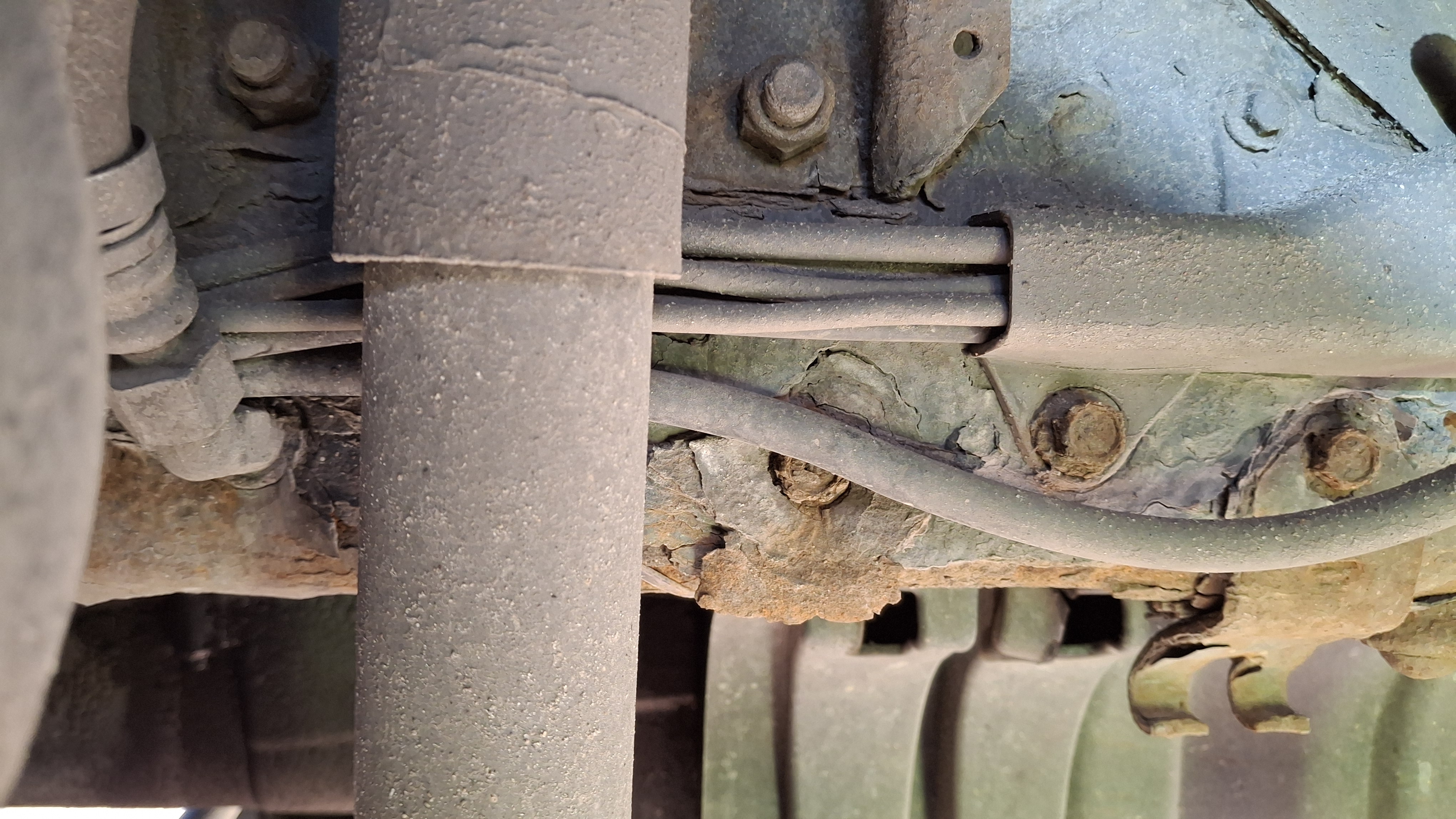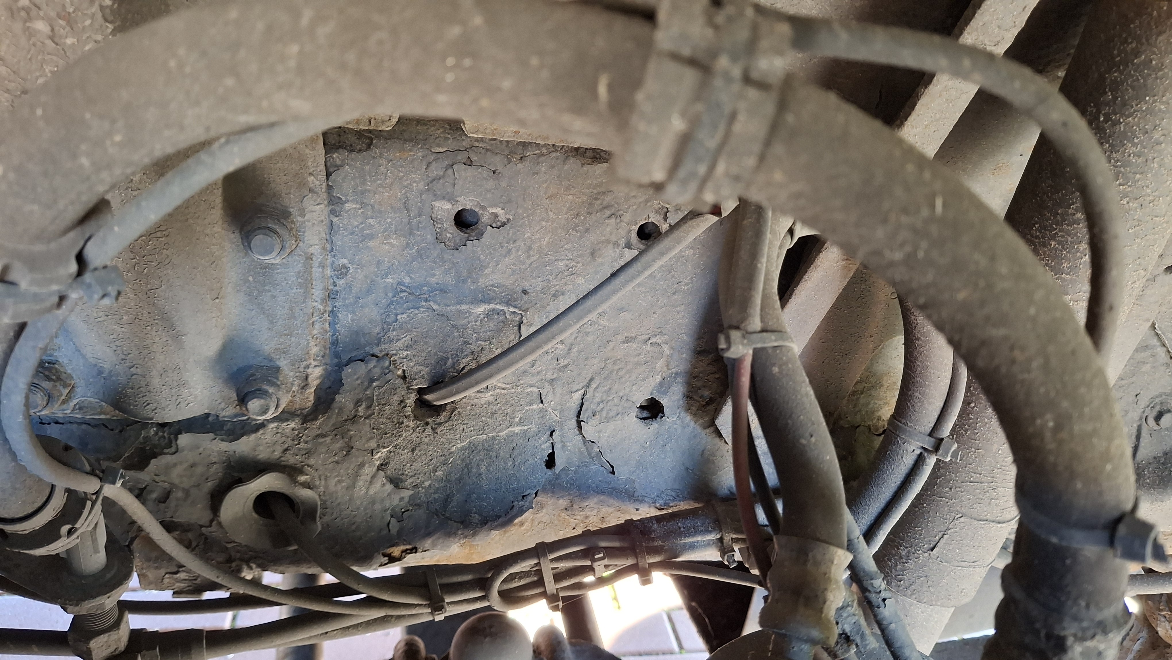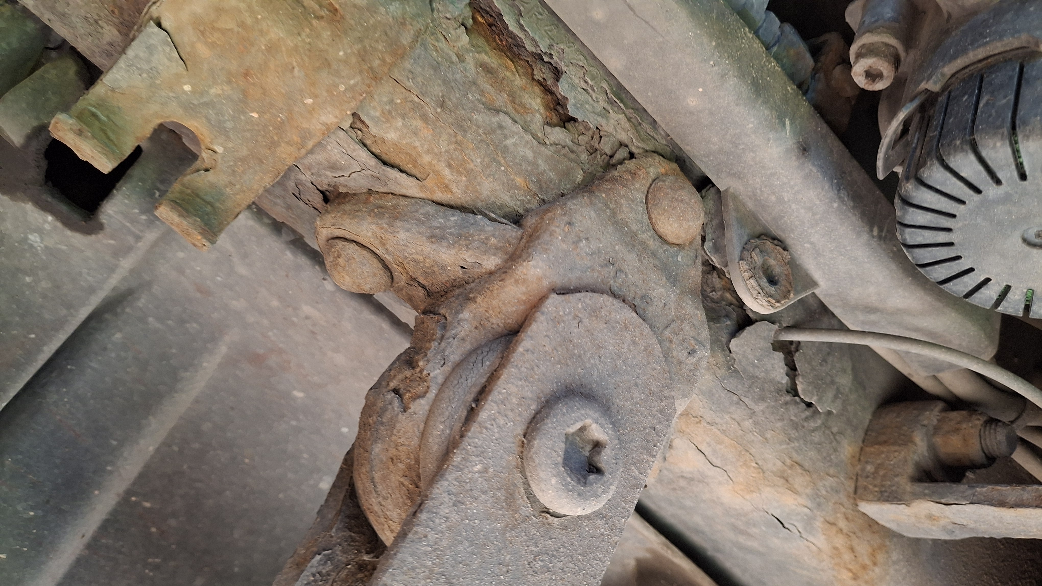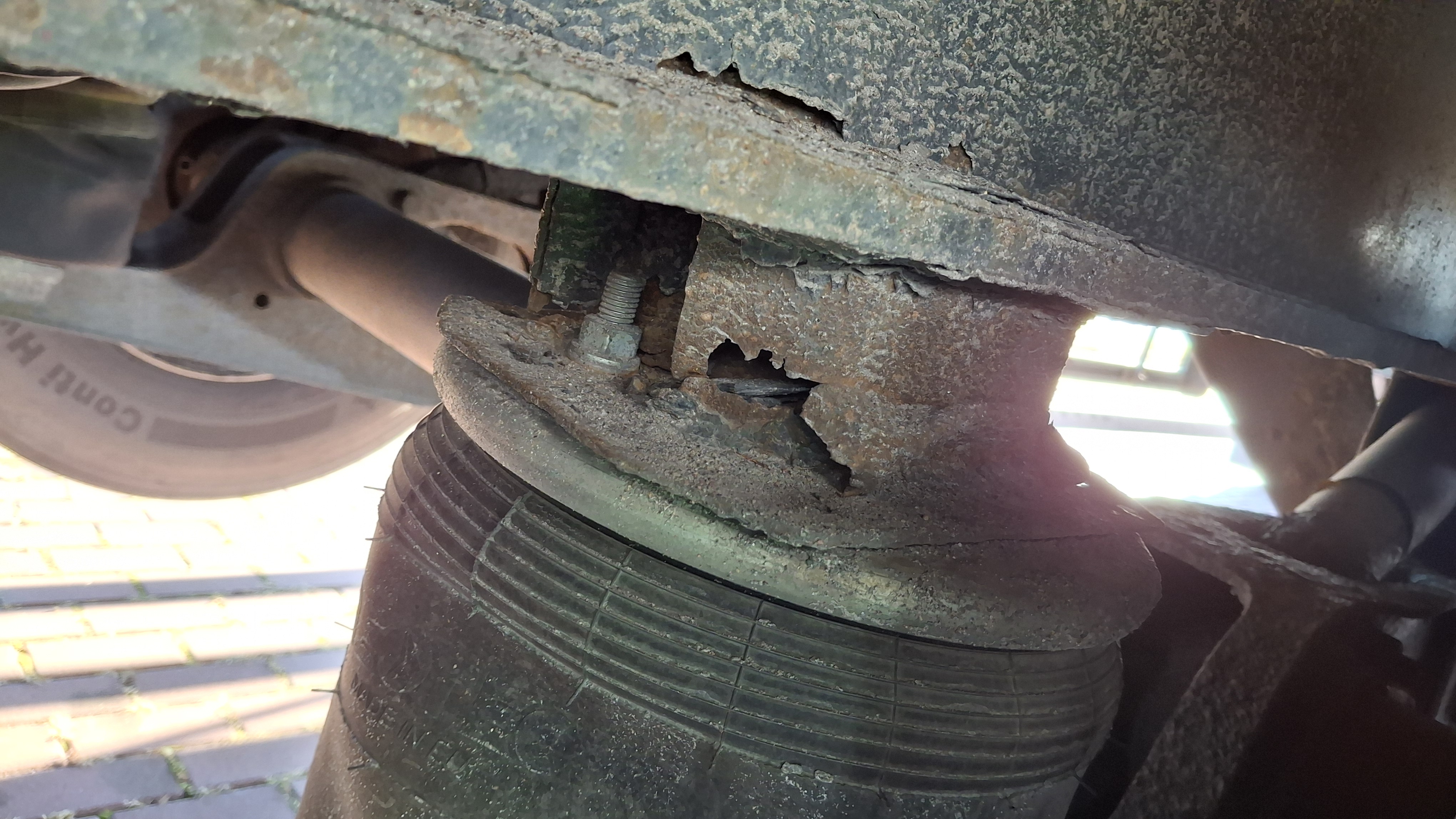 Już na wstępnym etapie kontroli inspektorzy zwrócili uwagę na niepokojący stan techniczny zarówno ciągnika siodłowego, jak i naczepy. Dokładniejsze oględziny potwierdziły poważne nieprawidłowości, które mogły realnie wpływać na bezpieczeństwo na drodze. Stwierdzono m.in.: nadmierną korozję ramy w ciągniku siodłowym oraz naczepie, nieczytelny był również numer VIN ciągnika siodłowego, co uniemożliwia jednoznaczną identyfikację pojazdu oraz stwierdzono wycieki płynów eksploatacyjnych innych niż woda.