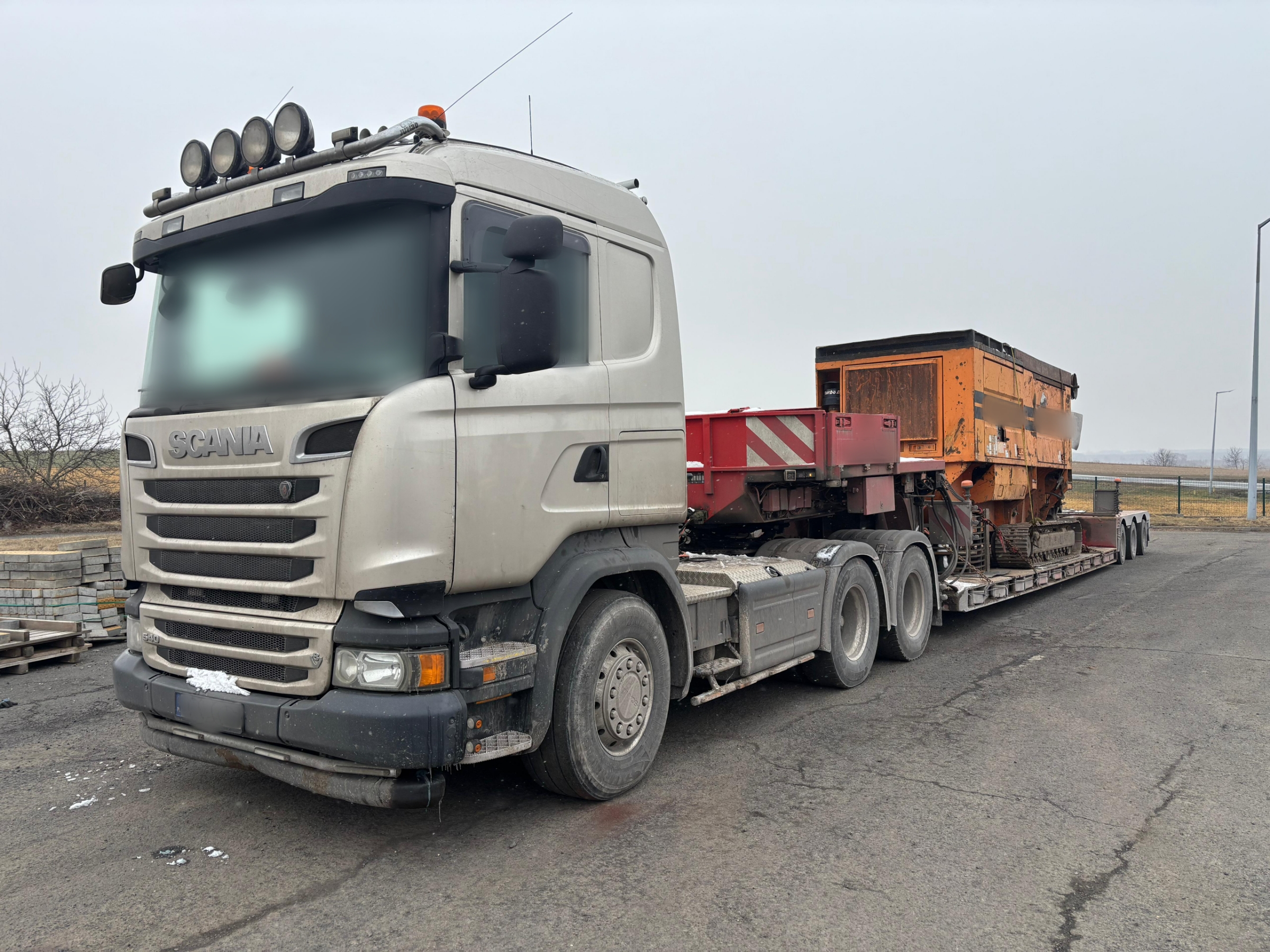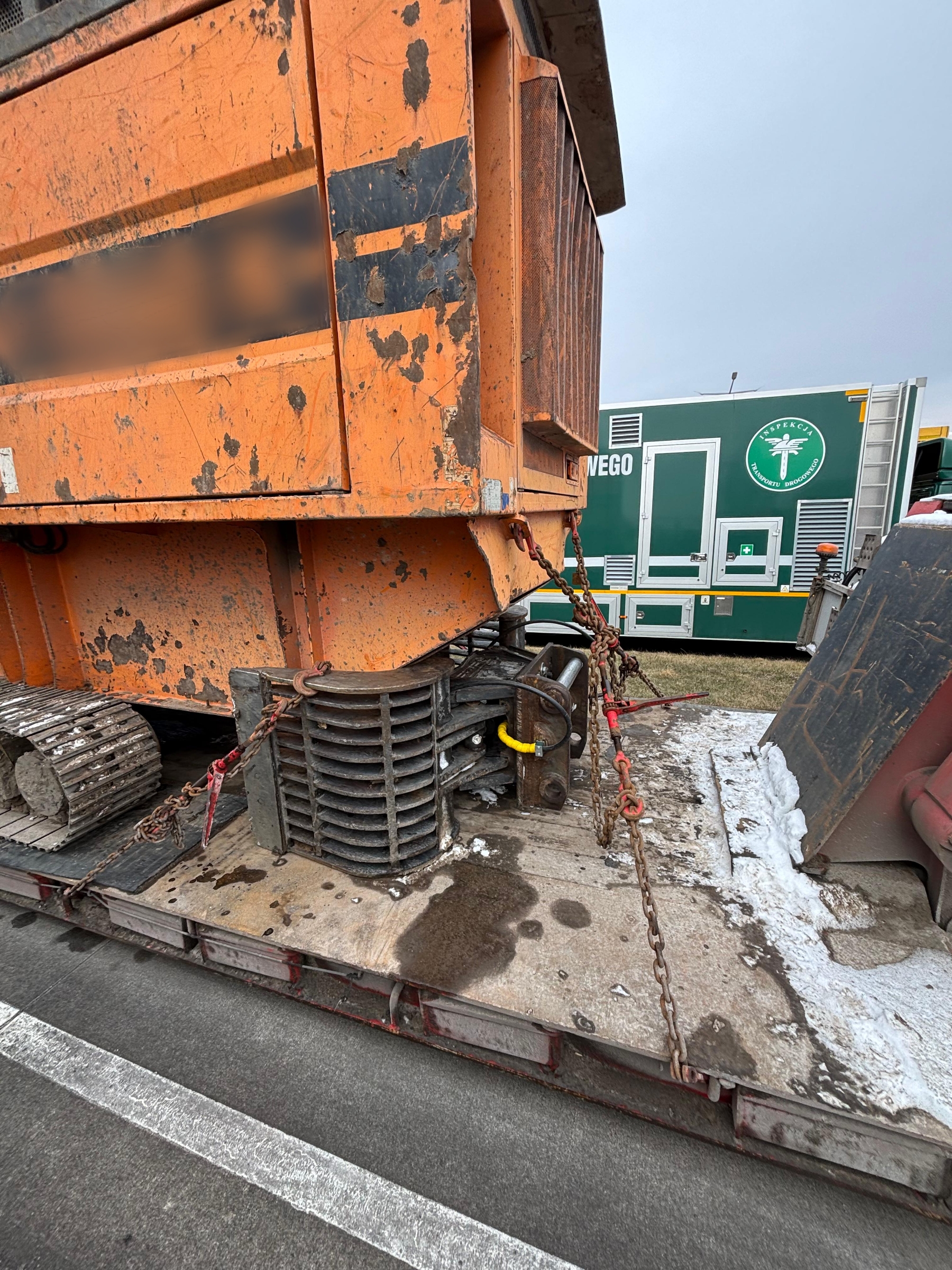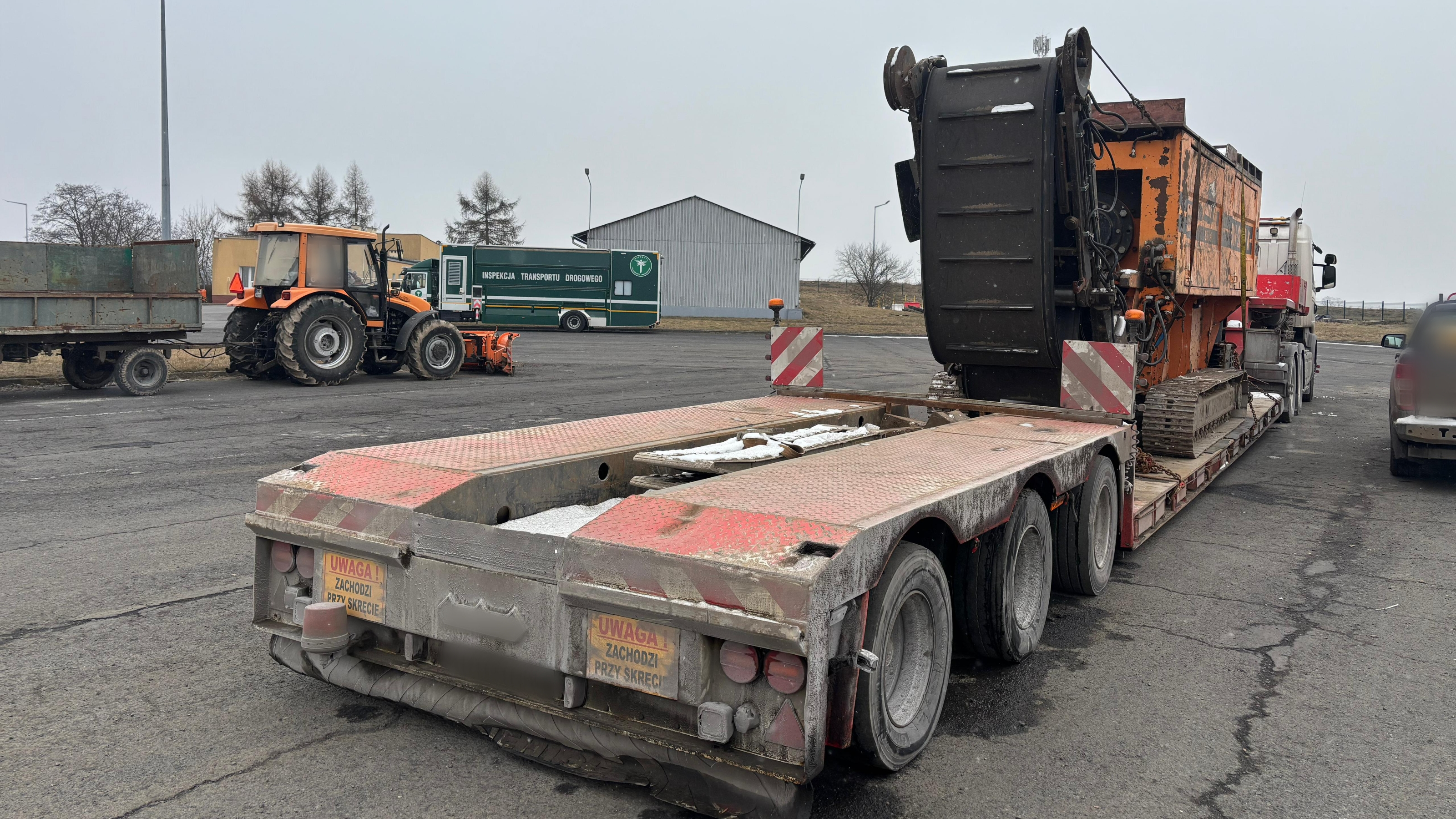 W dniu 16 lutego 2026 r. na punkcie kontrolnym w Byczynie inspektorzy z oddziału terenowego Opolskiego Wojewódzkiego Inspektoratu Transportu Drogowego zatrzymali do kontroli zespół pojazdów należący do przewoźnika z województwa śląskiego. Skład tworzyły ciągnik siodłowy marki Scania oraz naczepa marki Nooteboom, przewożące maszynę specjalistyczną wraz z chwytakiem do załadunku drewna.