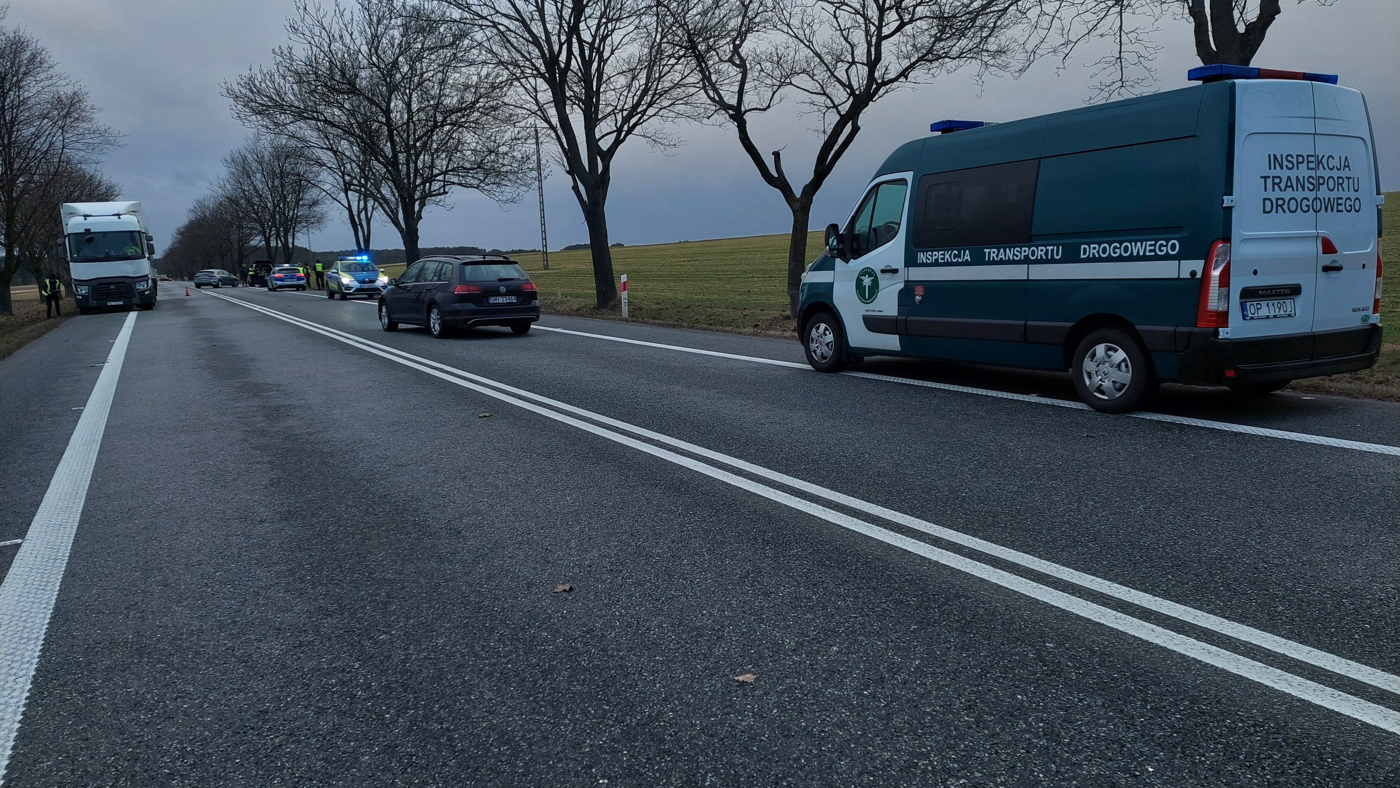 Dzisiaj tj. 25 stycznia, na drodze krajowej nr 94, na skutek potrącenia przez samochód ciężarowy śmierć na miejscu poniósł pieszy poruszający się tą drogą. Zabezpieczający miejsce zdarzenia funkcjonariusze Policji wezwali inspektorów z kędzierzyńsko – kozielskiego Oddziału tut. WITD. Inspektorzy pobrali dane z tachografu cyfrowego oraz karty kierowcy i wstępnie je przeanalizowali a następnie – pobrane dane jak i wyniki analizy – przekazali funkcjonariuszom Policji z KPP Strzelce Opolskie do dalszych czynności wyjaśniających.