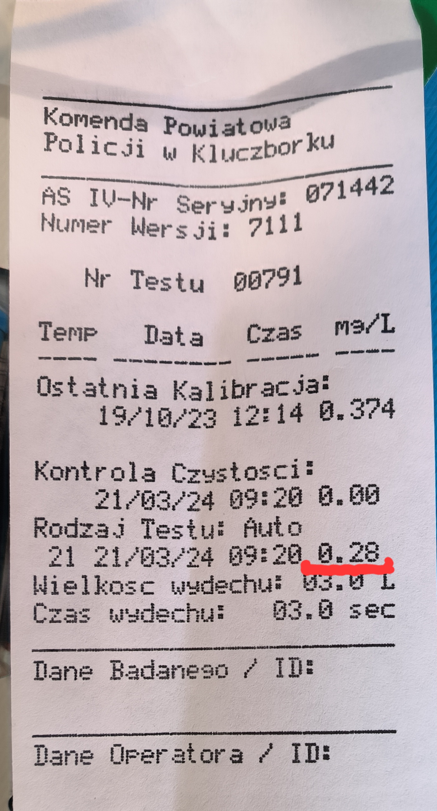 W trakcie działań kontrolnych podejrzenie Inspektorów wzbudziło zachowanie kierowcy. Zbadano stan trzeźwości kierowcy.