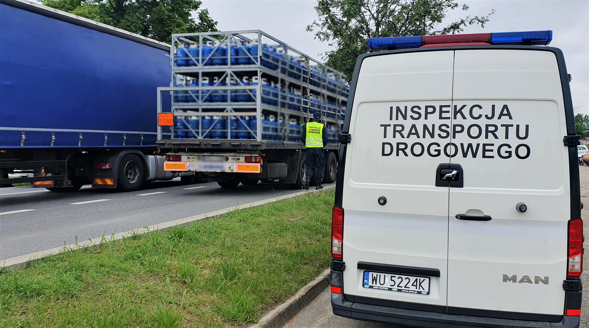 Zespół pojazdów, którego naczepa wypełniona była po brzegi butlami z gazem, nie miał odpowiedniej liczby gaśnic, a ciągnik od stycznia jeździł bez badań technicznych. Zestaw zatrzymali inspektorzy z Ostrowa Wielkopolskiego.