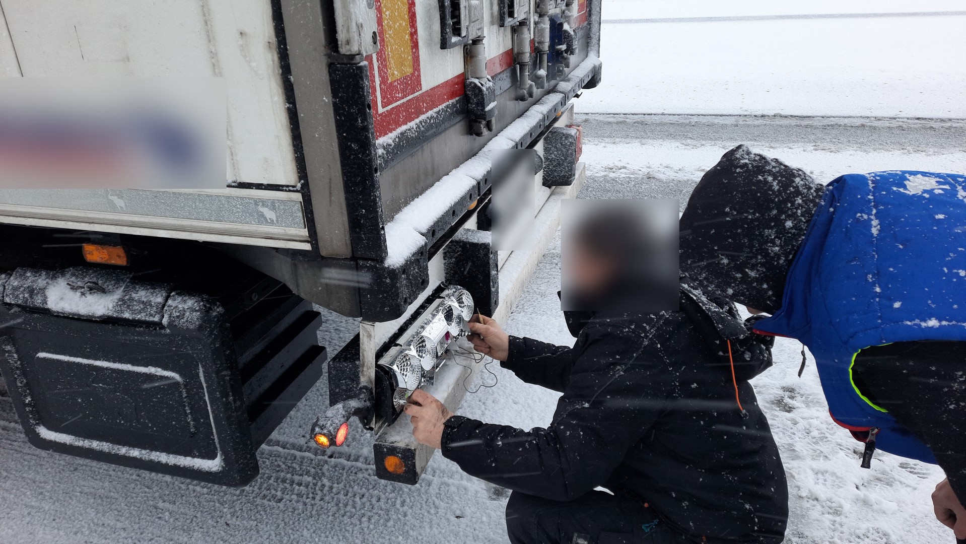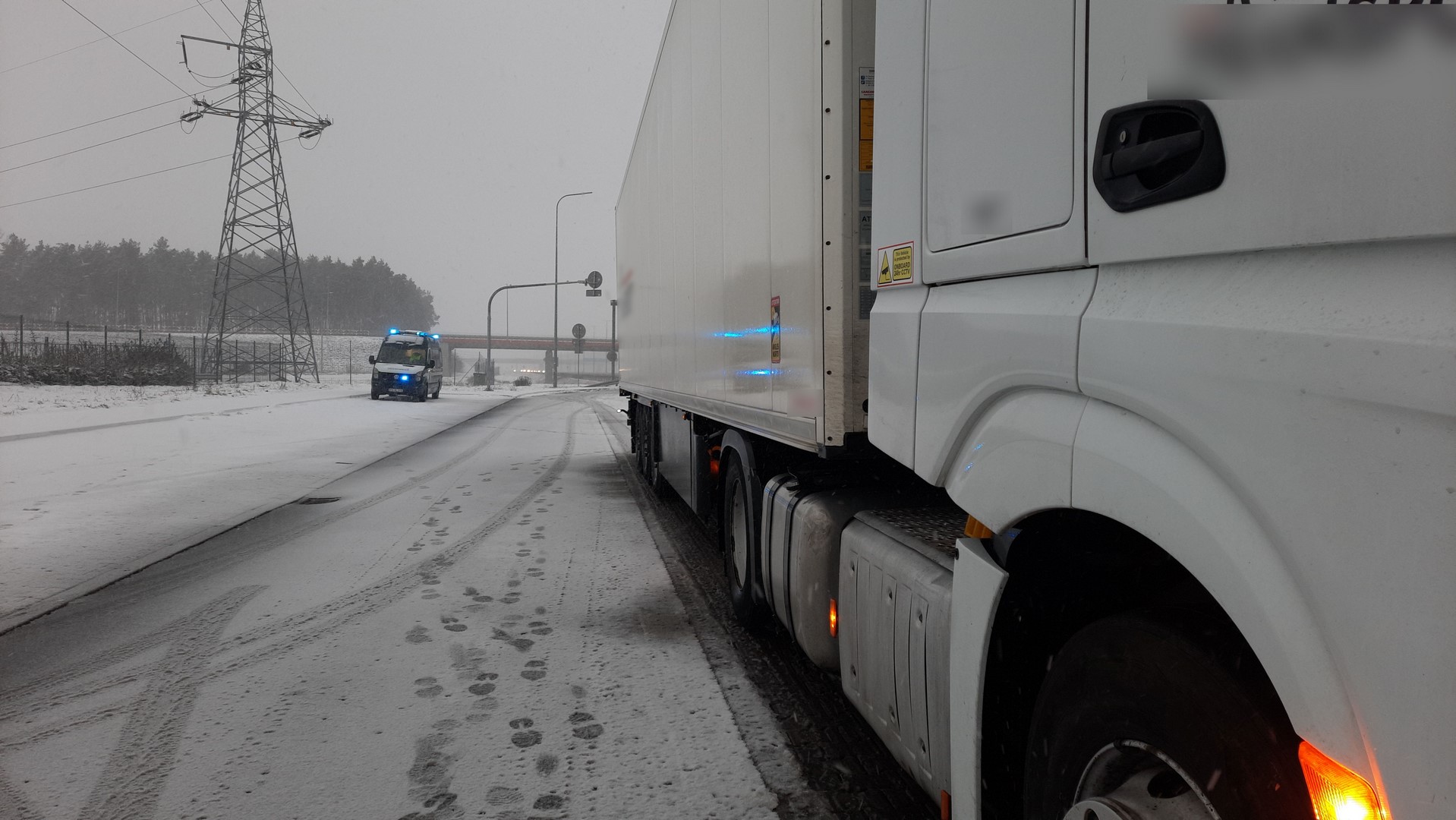 Niedziałające światła pozycyjne boczne w skontrolowanych naczepach stwierdzili inspektorzy z Konina, którzy w śnieżny poranek kontrolowali międzynarodowy transport na konińskim odcinku autostrady A2.