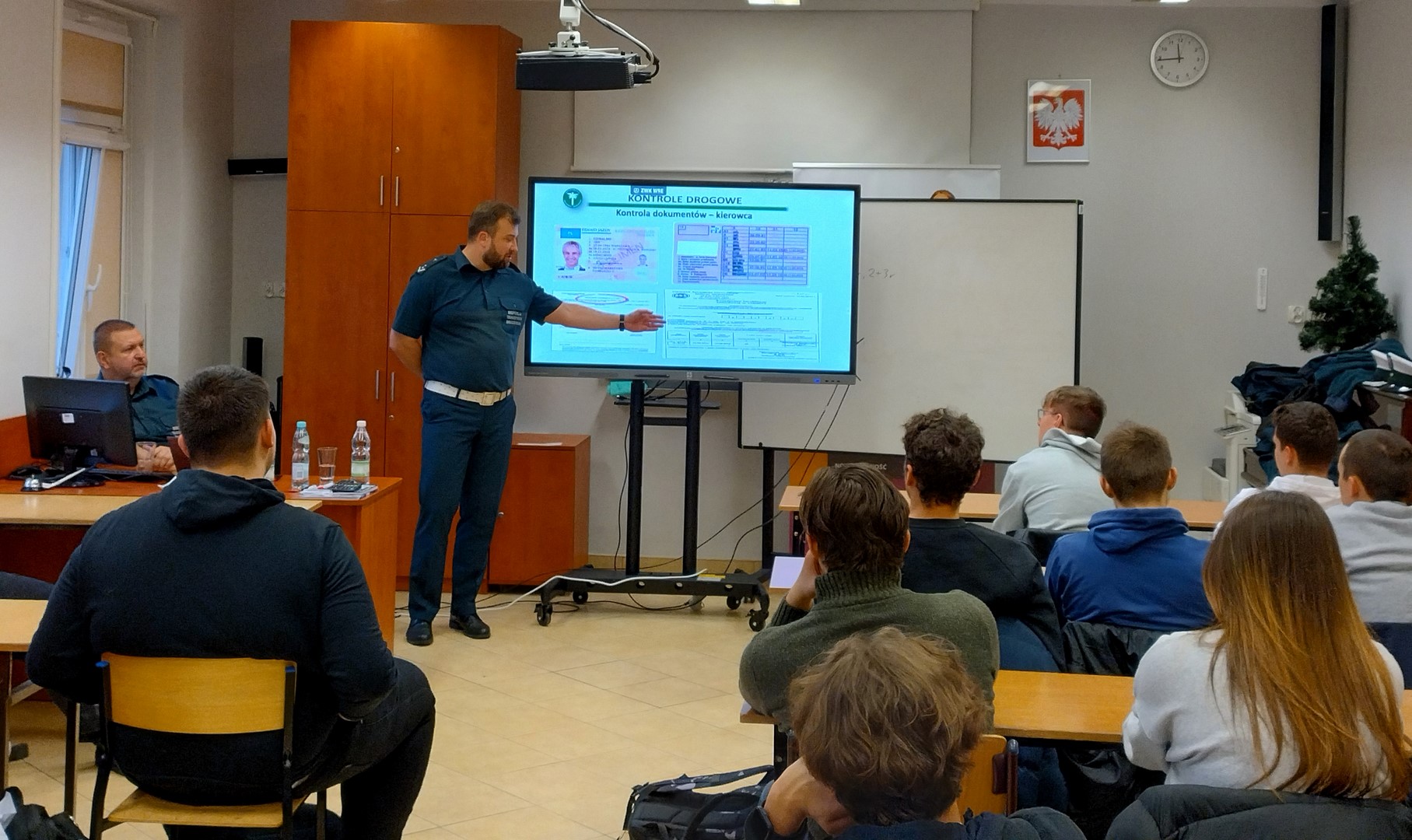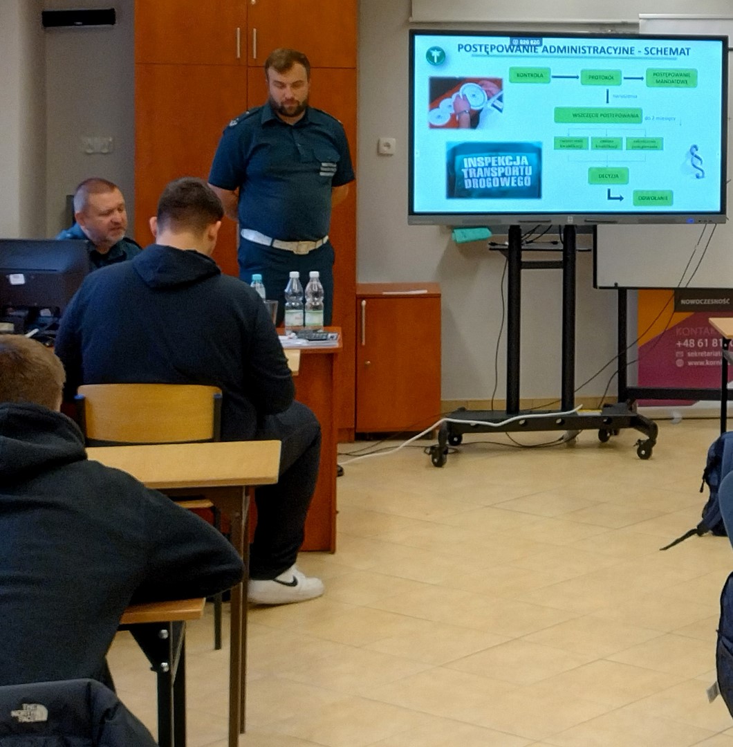 Naczelnik Wydziału Inspekcji wraz z inspektorem transportu drogowego z Poznania prowadzili w Kórniku zajęcia z uczniami klasy o profilu logistycznym.