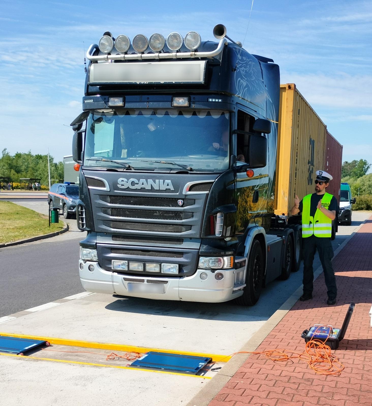 Rzeczywista masa całkowita tego pojazdu wynosiła 42,6 tony, wobec dopuszczalnych 32, a nacisk jaki wywierała na drogę podwójna oś napędowa, przekraczała dopuszczalny nacisk o 8,1 tony, przy wymaganych 18. Jak się okazało, wykonujący przewóz przedsiębiorca nie posiadał wymaganego w takich przypadkach zezwolenia na przejazd pojazdu nienormatywnego. Wszystko to spowodowało, że przejazd wstrzymano, do czasu wypompowania nadmiaru ładunku. Wobec przedsiębiorcy wszczęto postępowanie, zmierzające do nałożenia kary pieniężnej w wysokości 15 000 zł. Warto dodać, że pojazdy tego samego przewoźnika zostały zatrzymywane już wielokrotnie z licznymi naruszeniami parametrów wagowych.