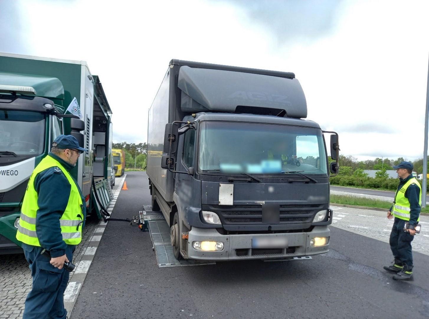 Kilkanaście usterek technicznych stwierdzili inspektorzy z Poznania podczas kontroli samochodów ciężarowych z użyciem Mobilnej Jednostki Diagnostycznej.