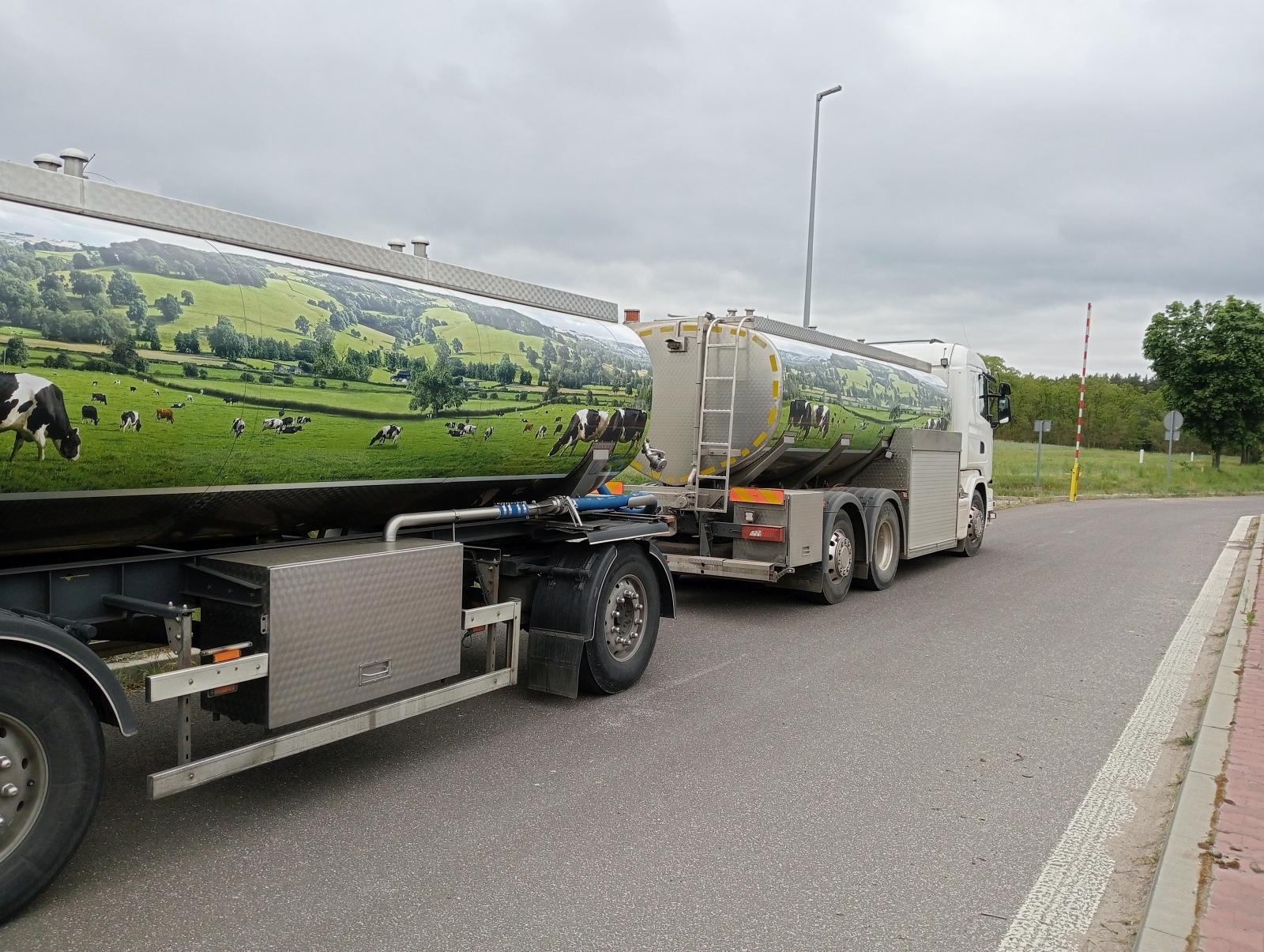 Inspektorzy, zatrzymali do kontroli zespół pojazdów, który z ładunkiem w postaci mleka ważył 43,2 t zamiast dopuszczalnych 40 t. Stwierdzone naruszenie, według kierowcy, wynikało z tzw. „Mlecznej górki”, co oznacza, iż krowy u danego rolnika dały więcej mleka, niż przeciętnie. Wobec przedsiębiorcy toczyć się będą postępowania administracyjne, zagrożone karą w wysokości 7000 zł. Zakazano dalszej jazdy, do momentu przepompowania nadmiaru mleka na inny pojazd.