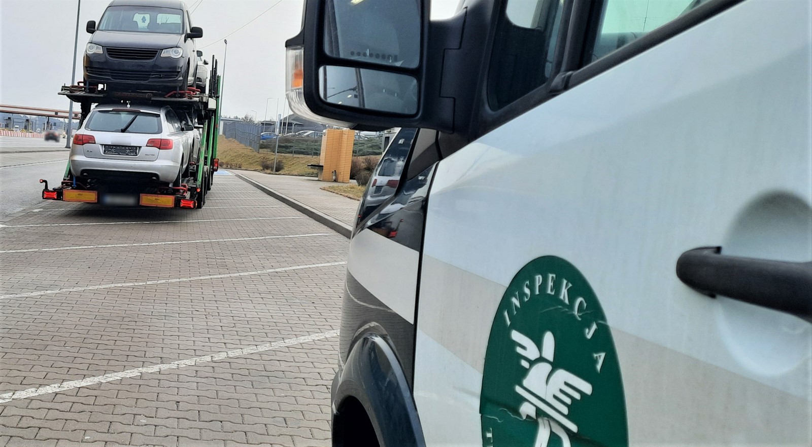 Wystające samochody osobowe z tyłu naczepy mogły stanowić zagrożenie w ruchu drogowym. Mało doświadczonego kierowcę, który dodatkowo skrócił sobie tygodniowy okres odpoczynku zatrzymali wielkopolscy inspektorzy.