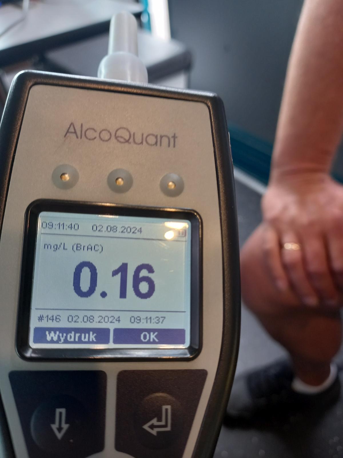 W trakcie kontroli inspektorzy wyczuli woń alkoholu od kierowcy, w związku z tym przeprowadzili badanie trzeźwości przy pomocy alkomatu. Urządzenie wykazało 0,32 promila alkoholu w wydychanym powietrzu. Powiadomiono funkcjonariuszy Policji, którzy przejęli kierowcę do dalszych czynności.