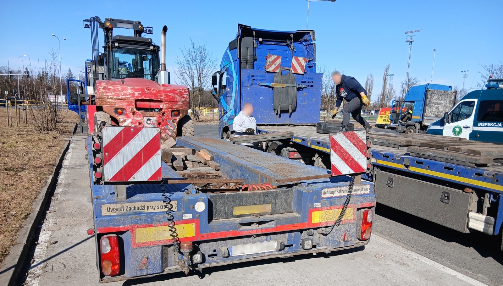 Podczas kontroli kierowca usunął naruszenie poprzez przeładunek nadmiaru ładunku na inny podstawiony pojazd. Po doprowadzeniu transportu do zgodności z warunkami posiadanego zezwolenia kategorii IV mógł kontynuować dalszą jazdę.