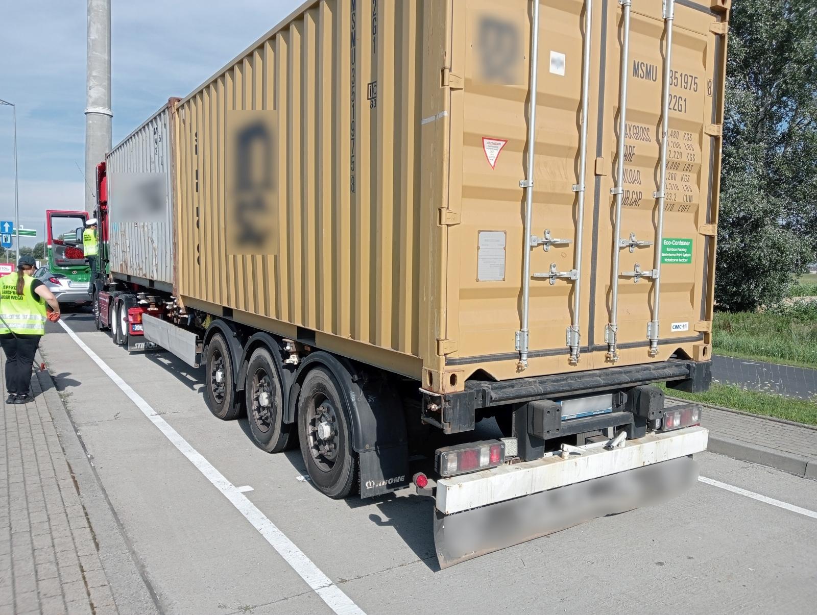 Dnia 16 lipca Inspektorzy z Oddziału Wydziału Inspekcji w Gnieźnie, przeprowadzili kontrole zespołu pojazdów, którym kierowca przewoził dwa kontenery 20-stopowe, po drodze wojewódzkiej. Ze względu na nie normatywność pojazdu i nieusunięcie ujawnionych naruszeń, pojazd został odholowany na parking strzeżony.