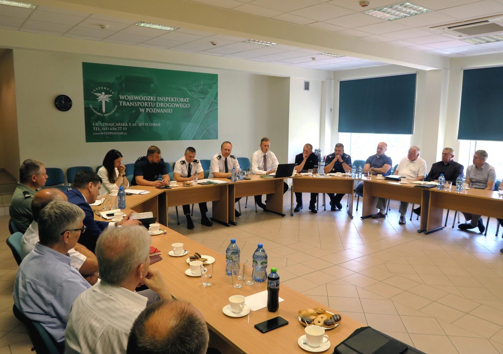 Za stołem zasiedli przedstawiciele: Izby Administracji Skarbowej, Komendy Wojewódzkiej Policji, Ogólnopolskiego Związku Pracodawców Transportu Drogowego, Okręgowego Inspektoratu Pracy, Ogólnopolskiego Związku Zawodowego Kierowców i Motorniczych, Poznańskiego Stowarzyszenia Taksówkarzy. Na spotkaniu nie mogło zabraknąć również, reprezentantów Urzędu Miasta Poznania, Wielkopolskiego Stowarzyszenia Międzynarodowych Przewoźników Samochodowych, Wielkopolskiego Oddziału Regionalnej Polskiej Izby Gospodarczej Transportu Samochodowego i Spedycji , Stowarzyszenia Zawodowego Taksówkarzy Poznańskich, Zrzeszenia Transportu Prywatnego oraz Zrzeszenia Międzynarodowych Przewoźników Drogowych w Polsce. Ze strony Inspekcji, w obradach udział wzięli Wielkopolski Wojewódzki Inspektor Transportu Drogowego Tomasz Tański, Naczelnik Wydziału Inspekcji Rafał Szurek, Zastępca Naczelnika Wydziału Inspekcji Arkadiusz Pabian oraz p.o. Naczelnika Wydziału Prawnego Łukasz Bilski.