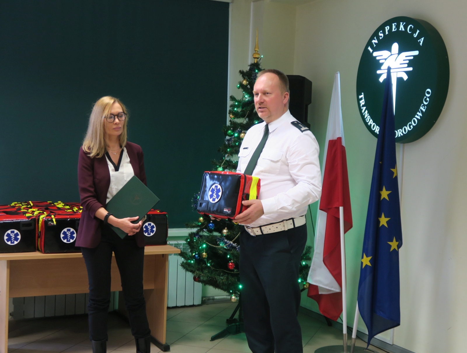 Zwieńczeniem spotkania było uroczyste przekazanie apteczek kwalifikowanej pierwszej pomocy przez Panią Julię Krakowiak – zastępcę dyrektora Wojewódzkiego Ośrodka Ruchu Drogowego w Poznaniu.