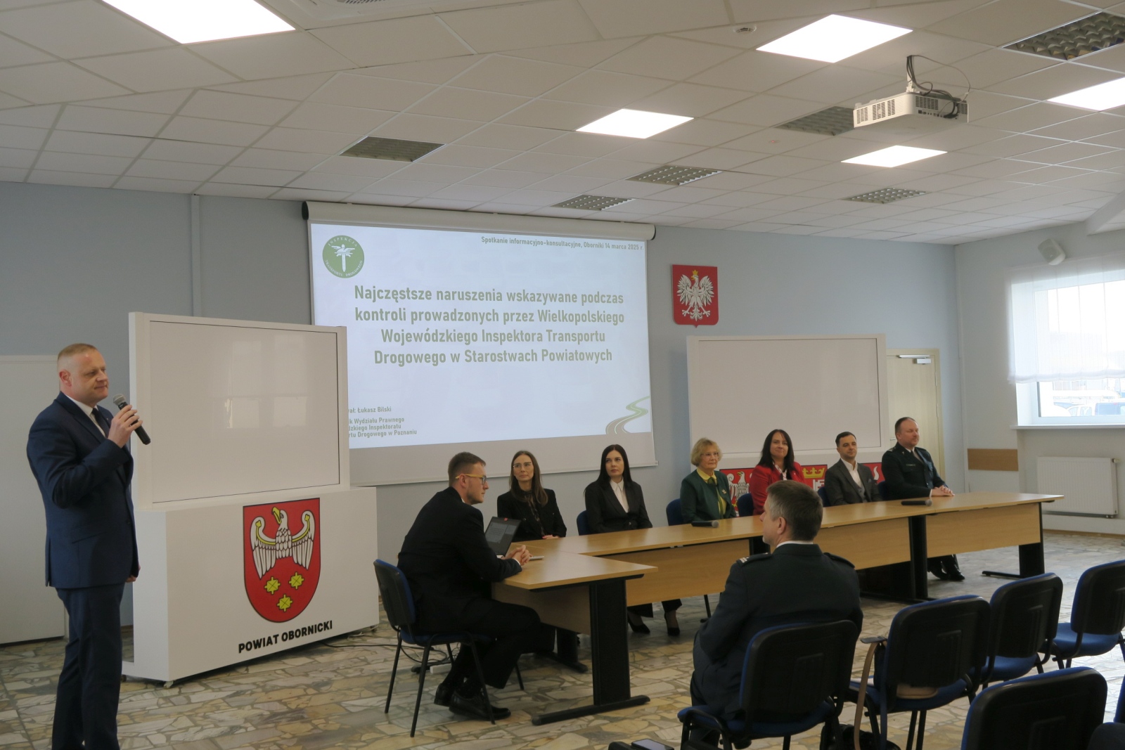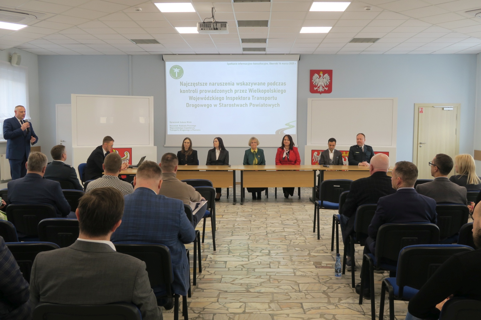 Dnia 14 marca, w sali sesyjnej Starostwa Powiatowego w Obornikach, odbyło się spotkanie informacyjno-konsultacyjne, które zostało zorganizowane przez Starostę Obornicką Zofię Kotecką oraz Wielkopolskiego Wojewódzkiego Inspektora Transportu Drogowego Tomasza Tańskiego, przy udziale I Wicewojewody Wielkopolski Karoliny Fabiś-Szulc.
