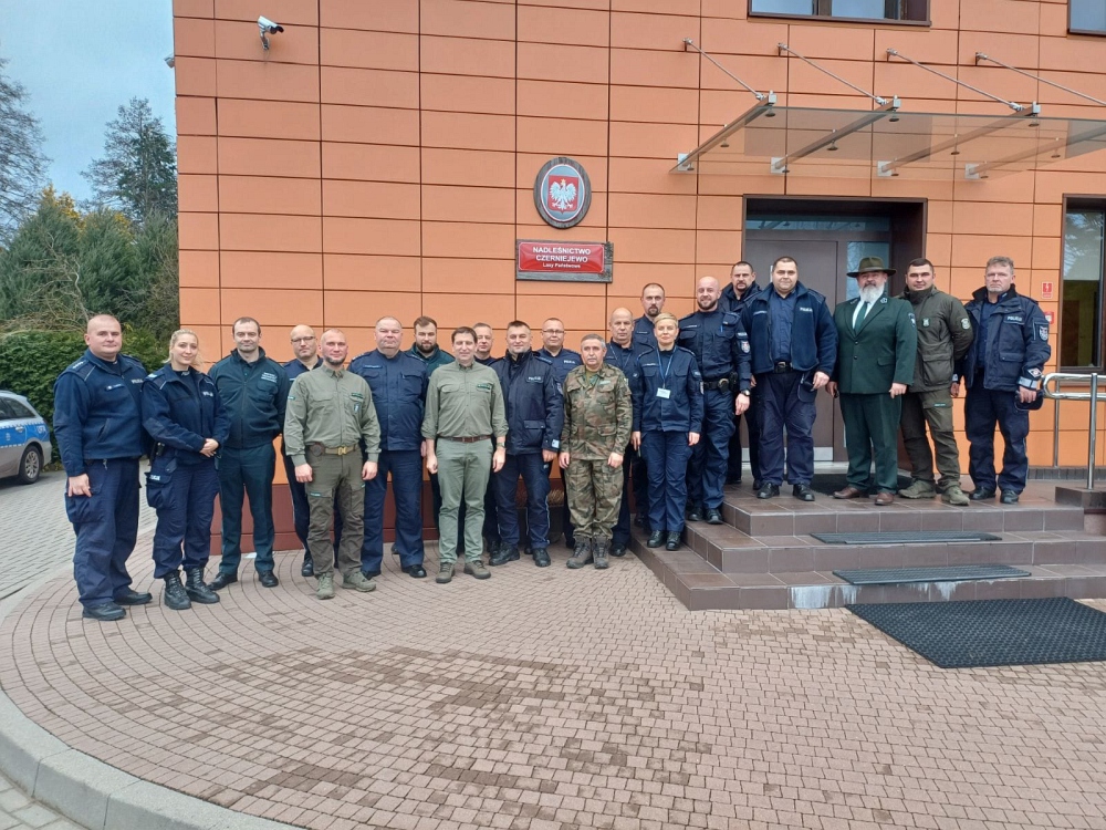Straż Leśna, Policja, Straż Pożarna, Straż Rybacka oraz Wojewódzki Inspektorat Transportu Drogowego prowadzili rozmowy na temat zwalczania szkodnictwa leśnego, przestrzegania prawa i zachowania bezpieczeństwa na obszarach leśnych. Spotkanie miało również na celu wskazanie dalszych kierunków działań przy kontrolach przewozu drewna, które realizują Inspektorzy Transportu Drogowego wspólnie ze Strażnikami Leśnymi.