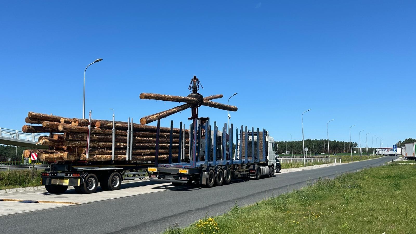 Kierowca w trakcie trwania kontroli drogowej doprowadził kontrolowany zespół pojazdów do normatywności, przez przeładunek nadmiaru dłużycy, na inny podstawiony zespół pojazdów.