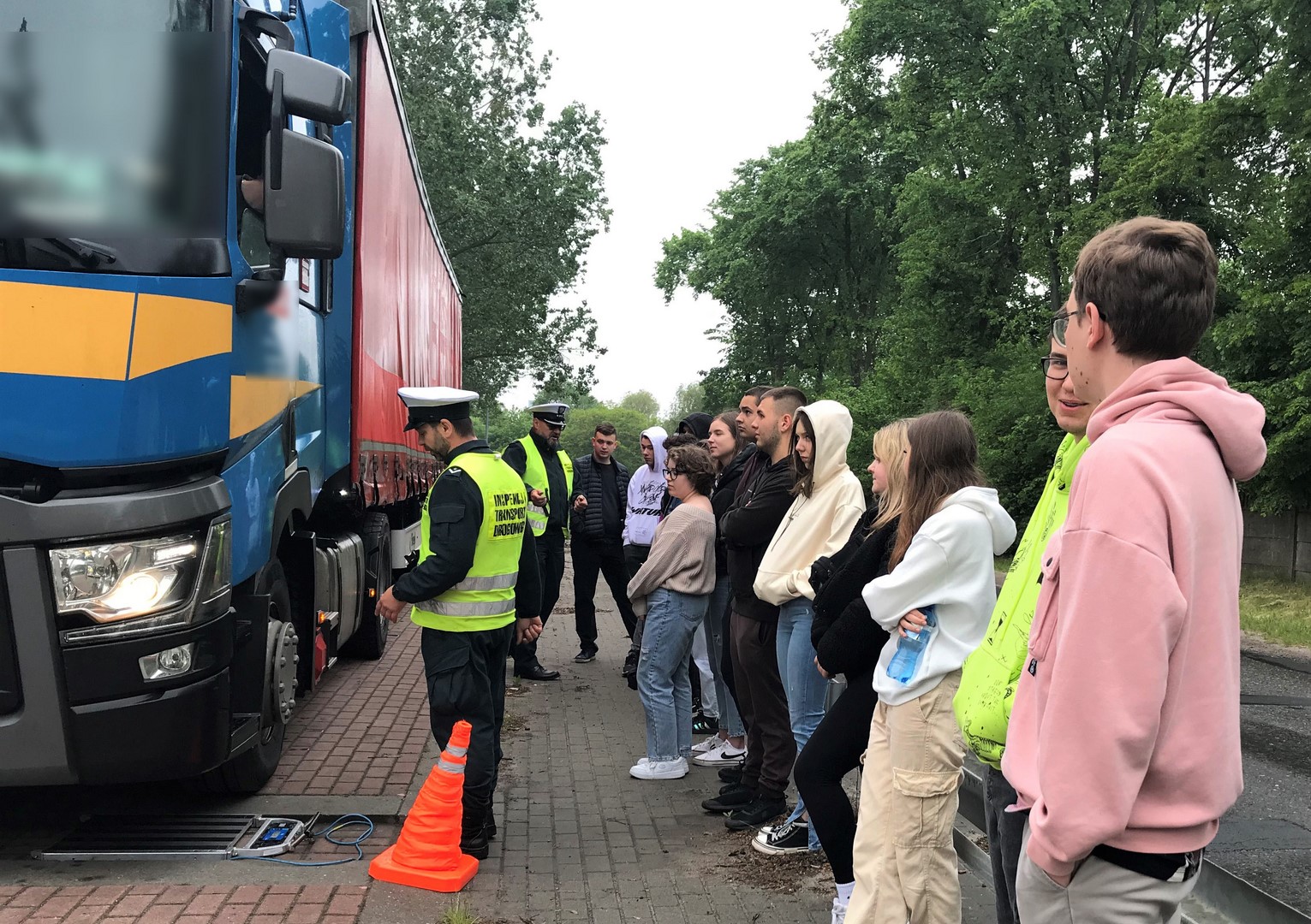 W ramach współpracy z Zespołem Szkół Centrum Kształcenia Ustawicznego im. Stefana Batorego w Koninie uczniowie czwartej klasy o profilu handlowo - logistycznym 25 maja przyglądali się kontrolom konińskiej Inspekcji Transportu Drogowego na drodze. Działania inspektorów w tym dniu były ukierunkowane na ważenie pojazdów. Słuchacze dowiedzieli się, jak przeprowadzane było ważenie pojazdów, na czym polegała całościowa kontrola, a także czy był to skomplikowany proces w pracy inspektorskiej. Często zadawane pytania dotyczyły nie tylko czynności, które były wykonywane podczas kontroli, ale również wykrytych naruszeń i ich skutków prawnych dla kierowców i przedsiębiorców. Spotkanie było nowym doświadczeniem zarówno dla młodych ludzi, jak i inspektorów, którzy nie mają takiego towarzystwa podczas pracy na drodze zbyt często.