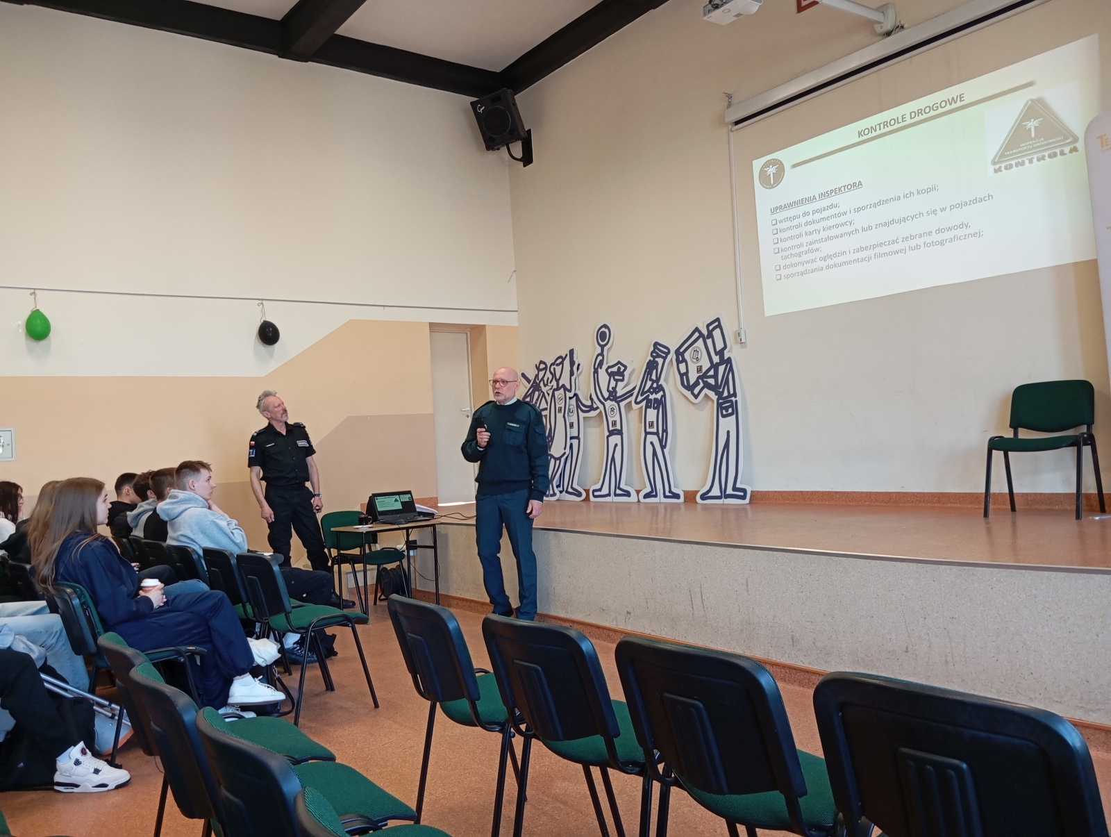 Uczniowie zapoznali się z wybranymi przepisami ustawy o transporcie drogowym, zadaniami kontrolnymi Inspekcji Transportu Drogowego oraz innymi regulacjami prawnymi, dotyczącymi przewozu towarów i osób. Uczniowie wykazali duże zainteresowanie tematyką zajęć. Tego typu inicjatywy stanowią istotny element działań edukacyjnych, mających na celu podnoszenie świadomości młodzieży w zakresie bezpieczeństwa w transporcie oraz promowanie odpowiedzialnych postaw w ruchu drogowym.